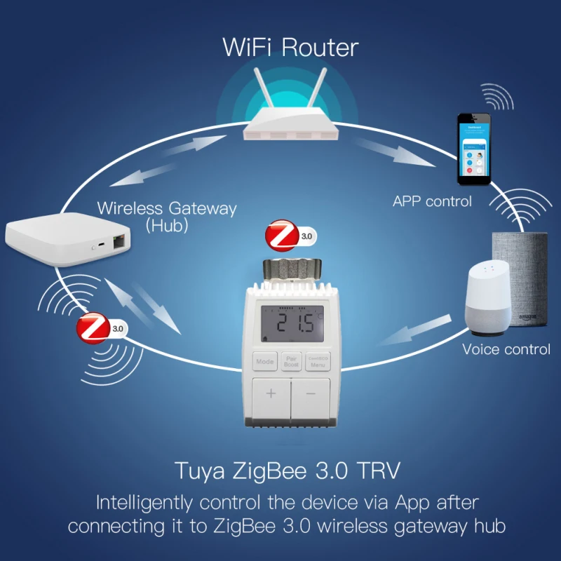 Беспроводной шлюз Tuya ZigBee является обязательным: беспроводной концентратор ZigBee является обязательством, которое подключается к клапану многих других умных продуктов ZigBee и реализует всю связь ваших устройств умного дома. Просто добавьте свой шлюз в приложение, а затем добавьте привод радиатора к вашему шлюзу в приложении.