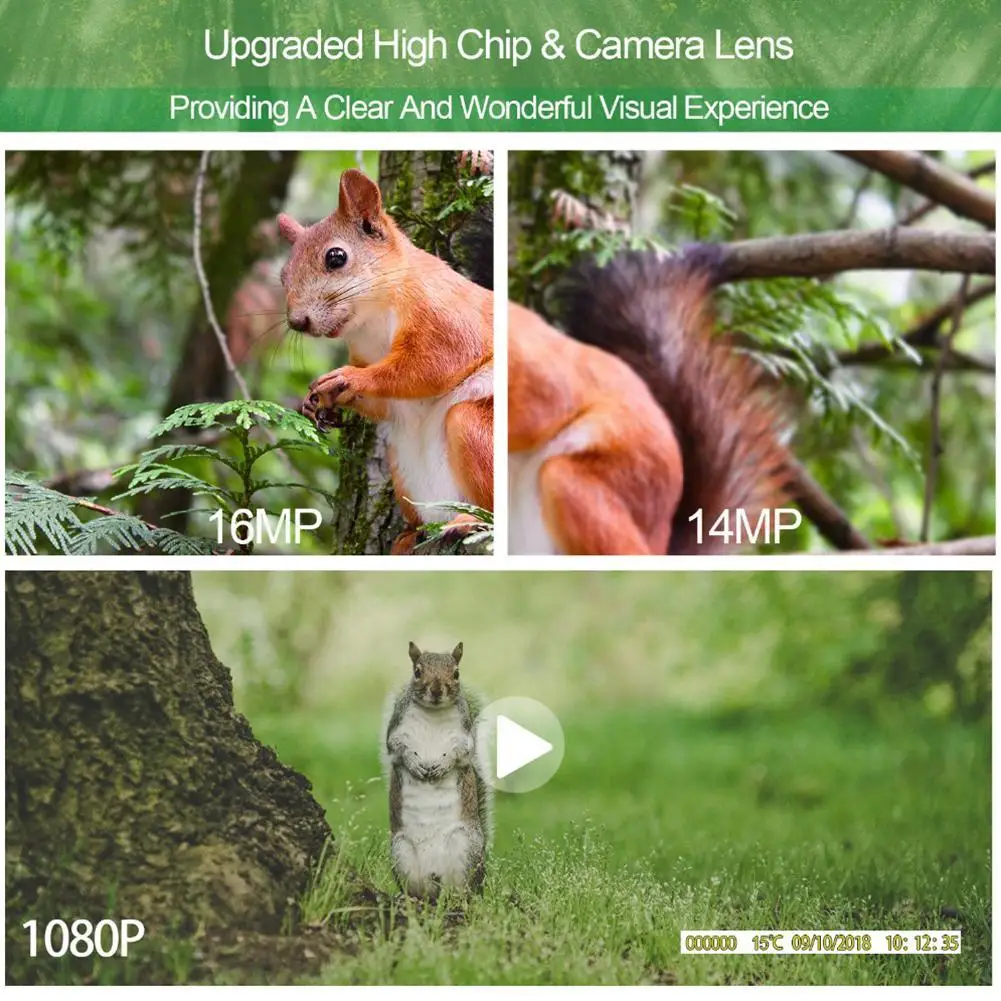 120 градусов 1080P HD PIR сенсор камера, поддержка 20MP / 16MP / 8MP / 5MP / 3MP опциональное разрешение изображения, 1080P 30fps видео. Инфракрасная Камера Съемки диких животных