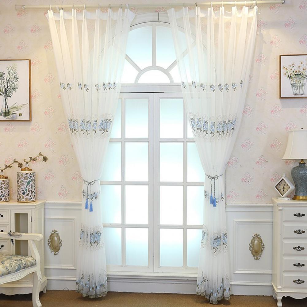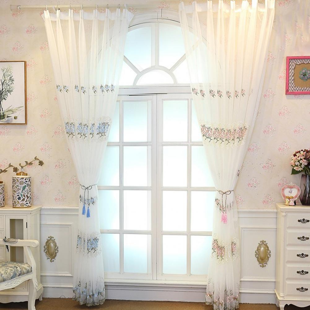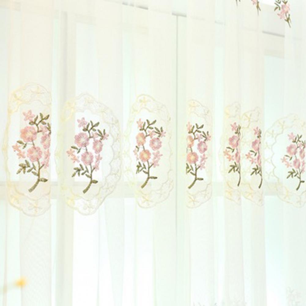 Вышитая цветочным узором, эта прозрачная занавеска является элегантной и деревенской для вас, чтобы повесить на гостиную, чтобы украсить ваши окна.