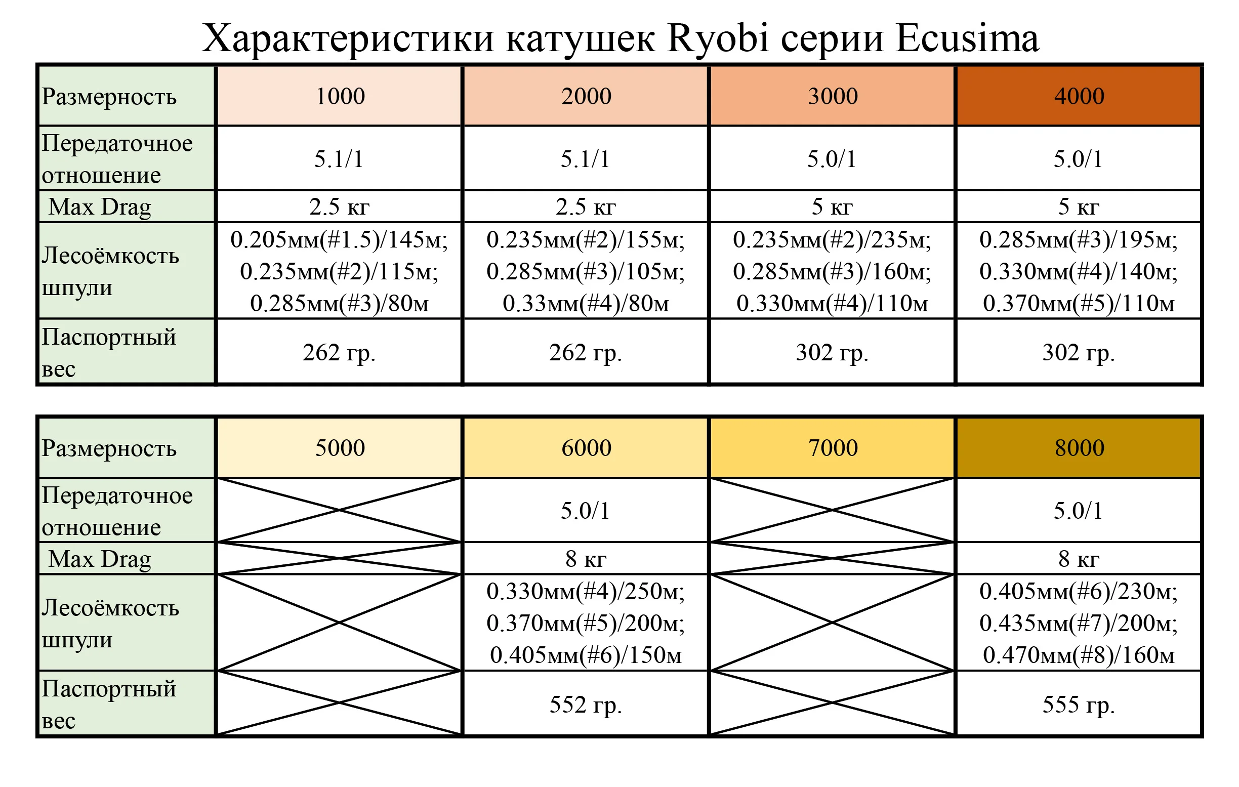 С целью снизить общую массу конструкции, при производстве основных деталей корпуса применяют современные полимеры. В моделях Ecusima установлены V-образные роторы, которые благодаря точной балансировке даже при высоких скоростях вращения не создают больших вибраций. Чтобы увеличить срок эксплуатации механизма и повысить его надежность, внутри устанавливаются пять подшипников (четыре шариковых и один роликовый). Еще предусмотрена система мгновенного анти-реверса, которая не дает ротору случайно провернуться в обратном направлении. Металлическая шпуля облегчена за счет перфорации. Кноб прорезиненный, а нажав специальную клавишу на ручке, мы получаем возможность прижать ее к катушке. Также можно переставить рукоять и из леворукого варианта сделать праворукую модель.