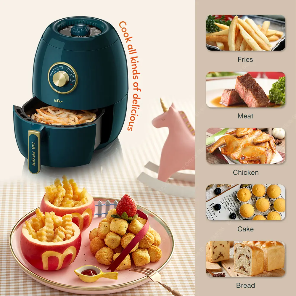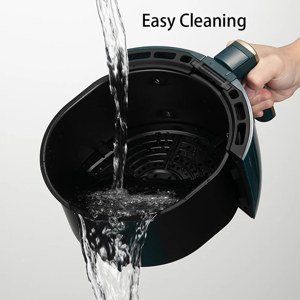 1. Когда воздушная фритюрница работает, если вам нужно вынуть жарочную корзину, осторожно переместите фритюрницу, чтобы избежать ожогов при высокой температуре;