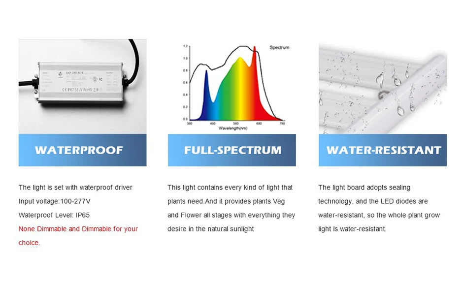 Полный спектр: 3000k + 4000k + 660nm + 730nm