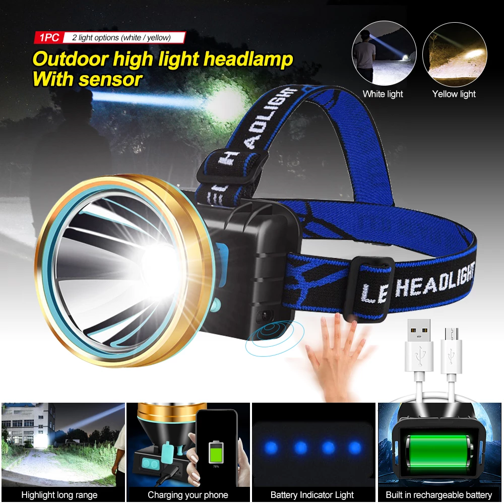 (2) желтый светильник имеет среднюю и низкую освещенность, не ослепительно, сильную проникающую мощность, близкий к естественному светильник, подходит для ночной рыбалки, кемпинга и так далее.