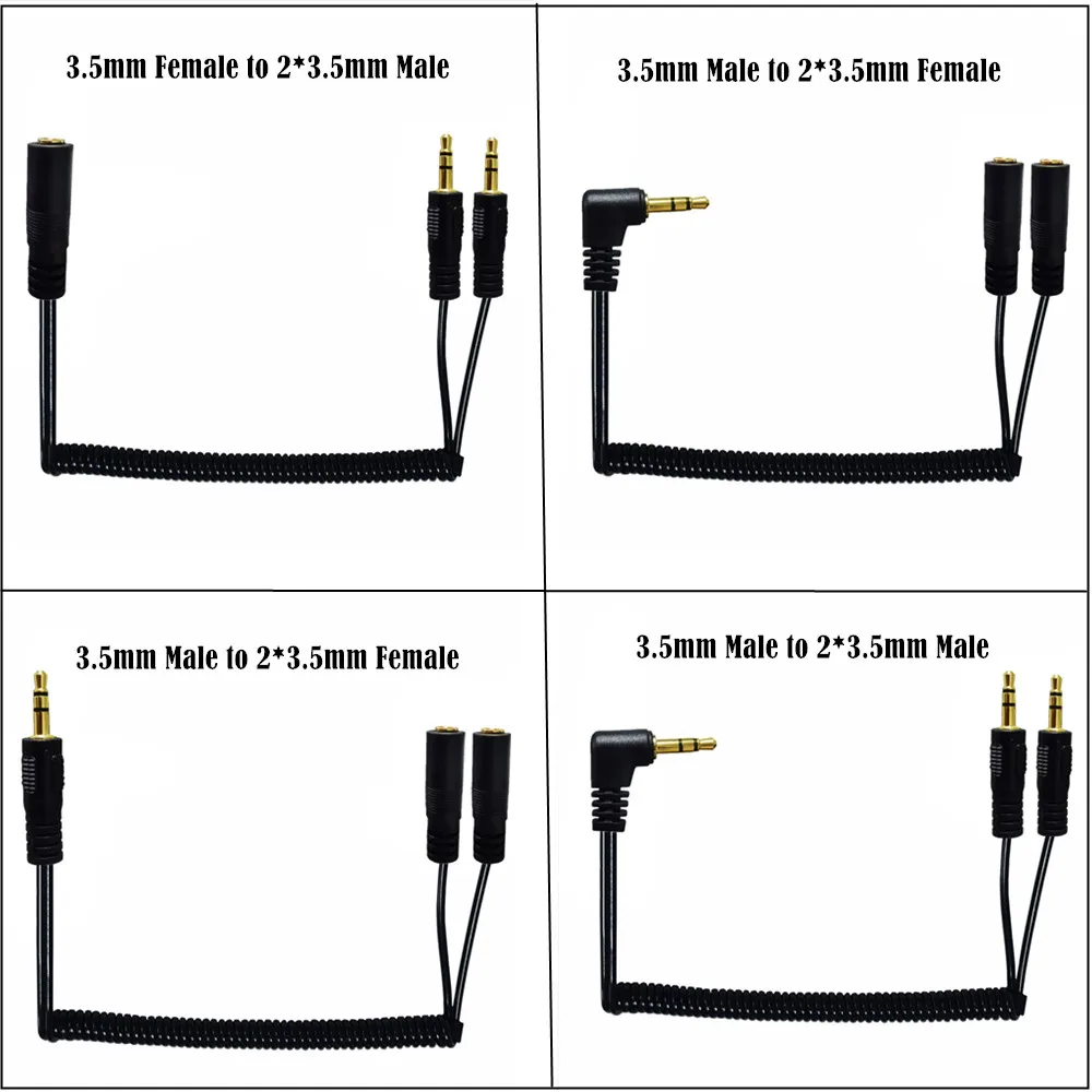 Спиральный спираль аудио кабель 3,5 мм стерео аудио кабель Y сплиттер кабель для наушников сплиттер адаптер для iPhone, планшеты, MP3 игроков 0,6-0,8 м;