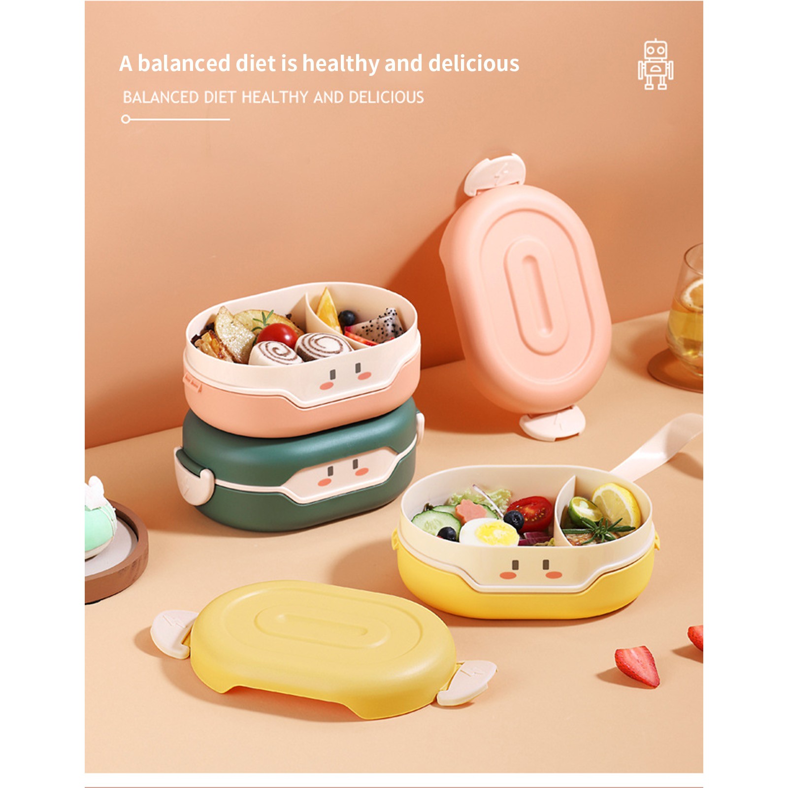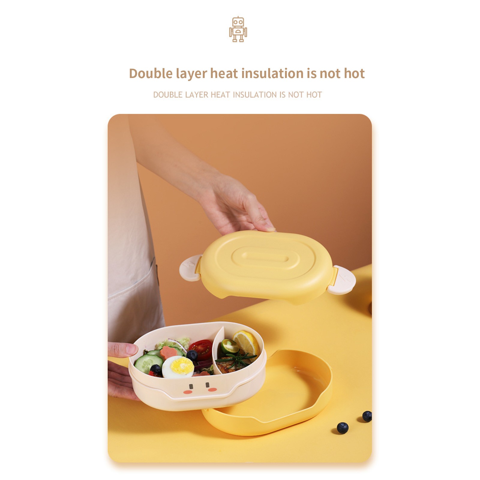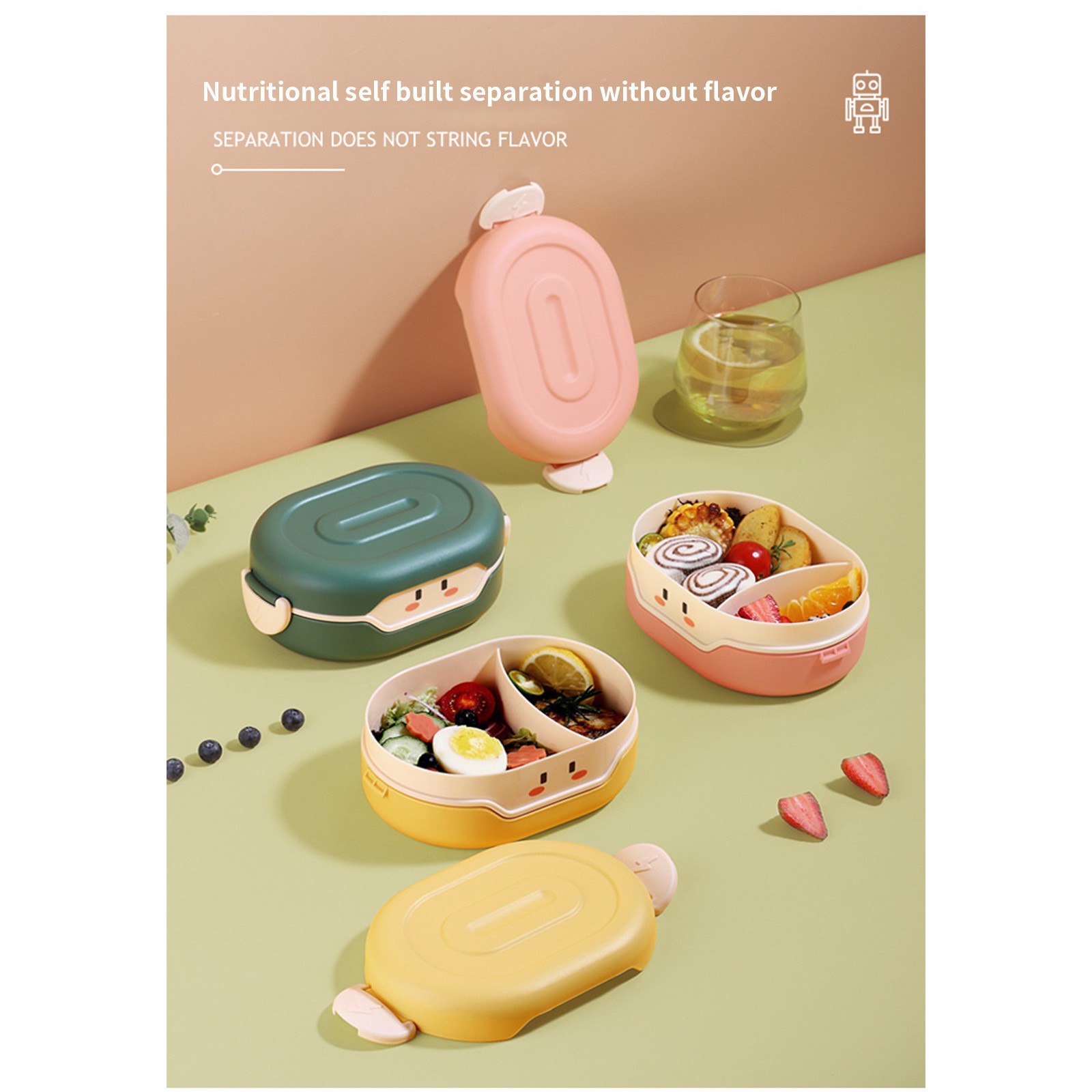 Внутренний слой содержит разделительную пластину, которая удобна для различения блюд. Дети также могут питаться сбалансированной диетой, когда они приносят еду или приедают на работу.