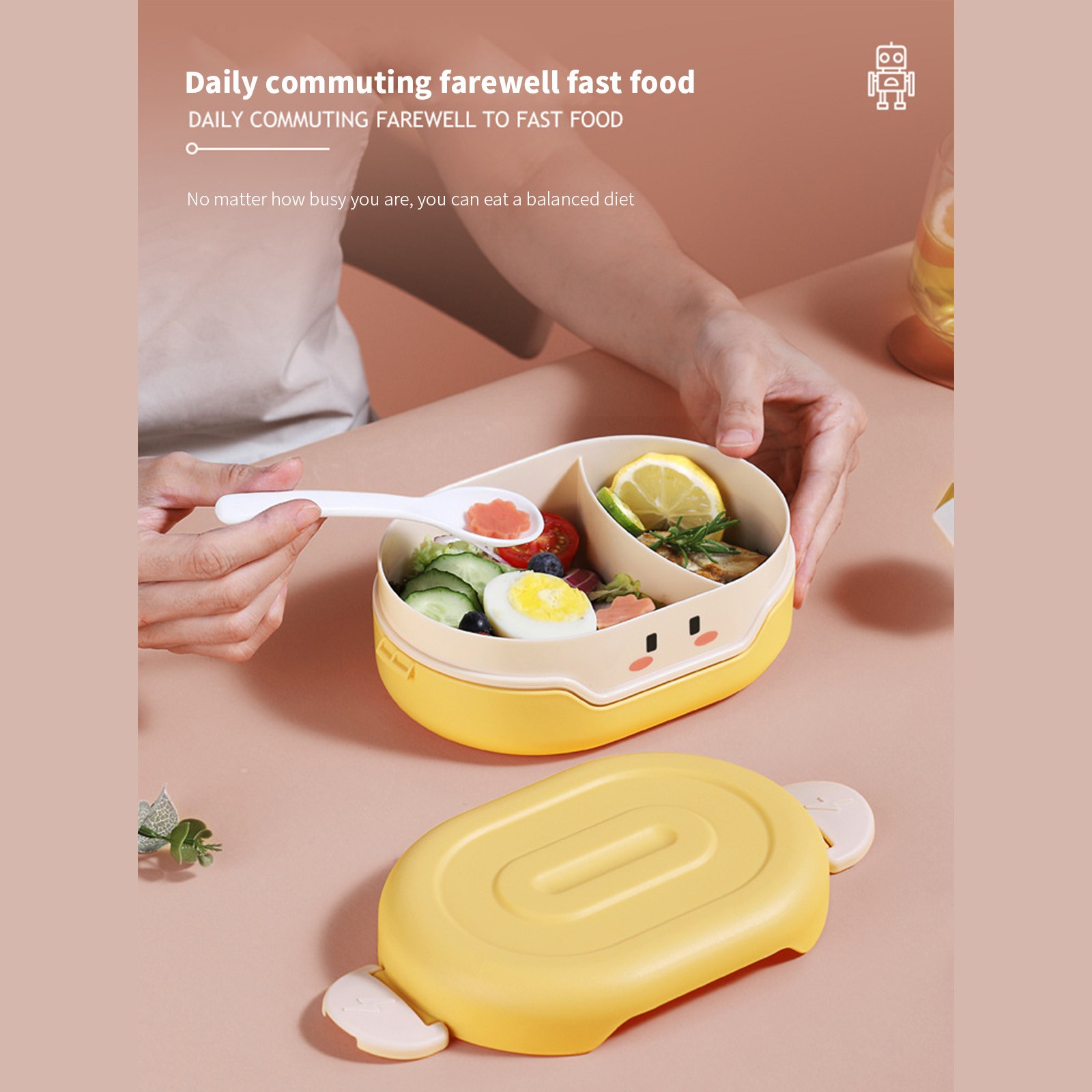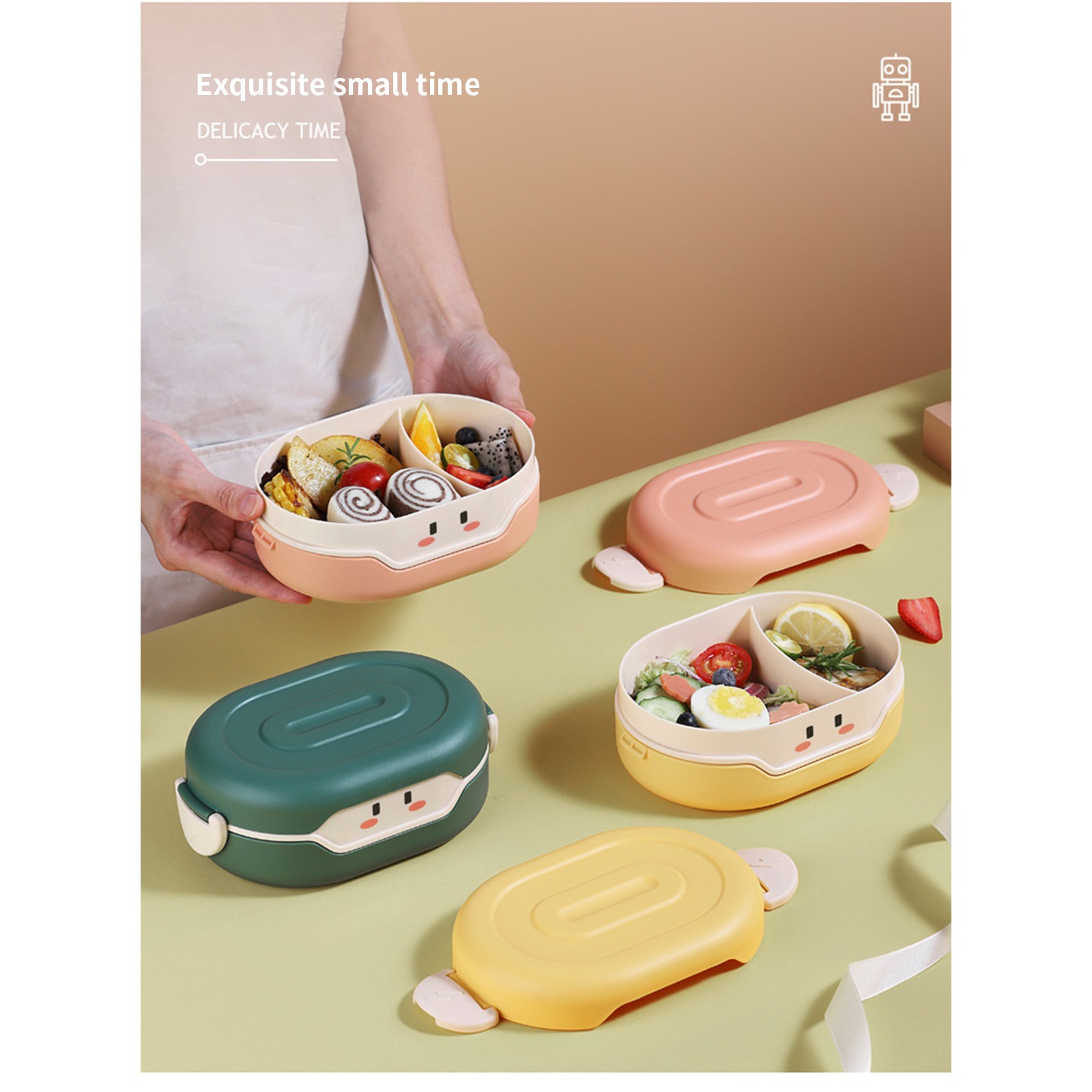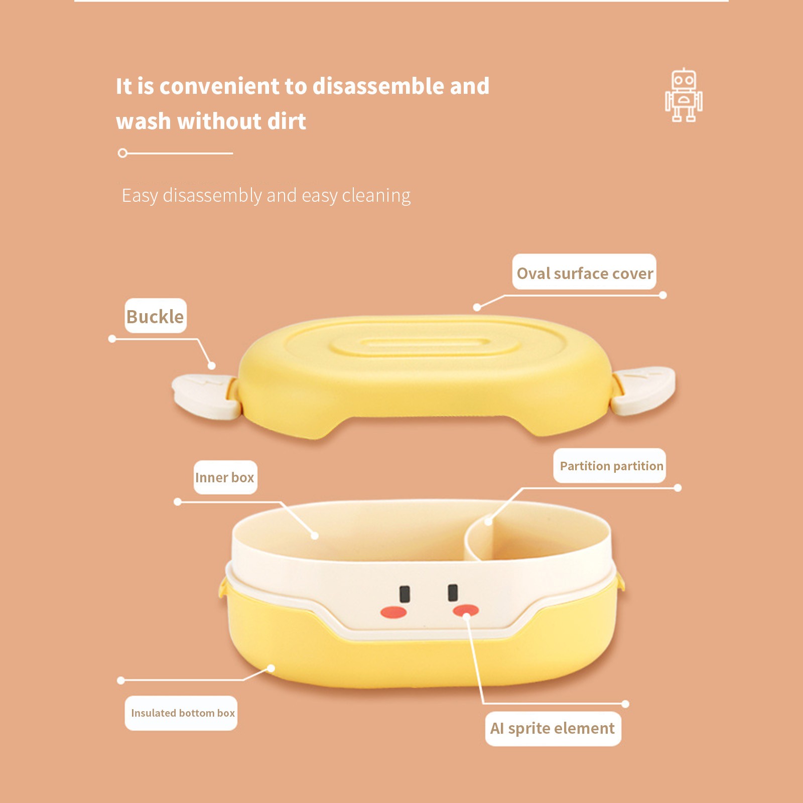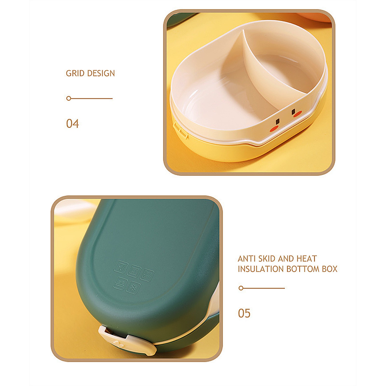 Внутренний слой содержит разделительную пластину, которая удобна для различения блюд. Дети также могут питаться сбалансированной диетой, когда они приносят еду или приедают на работу.