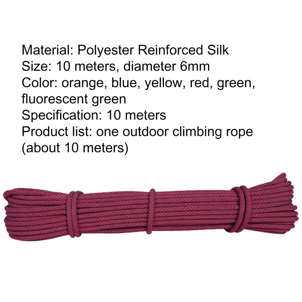 Длина верёвка для скалолазания на открытом воздухе-10 м, диаметр-6 мм.