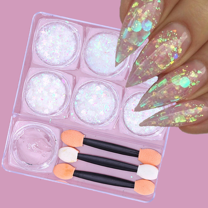 6 коробок блесток для ногтей