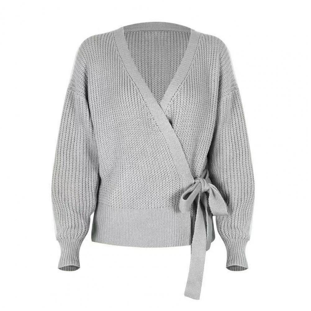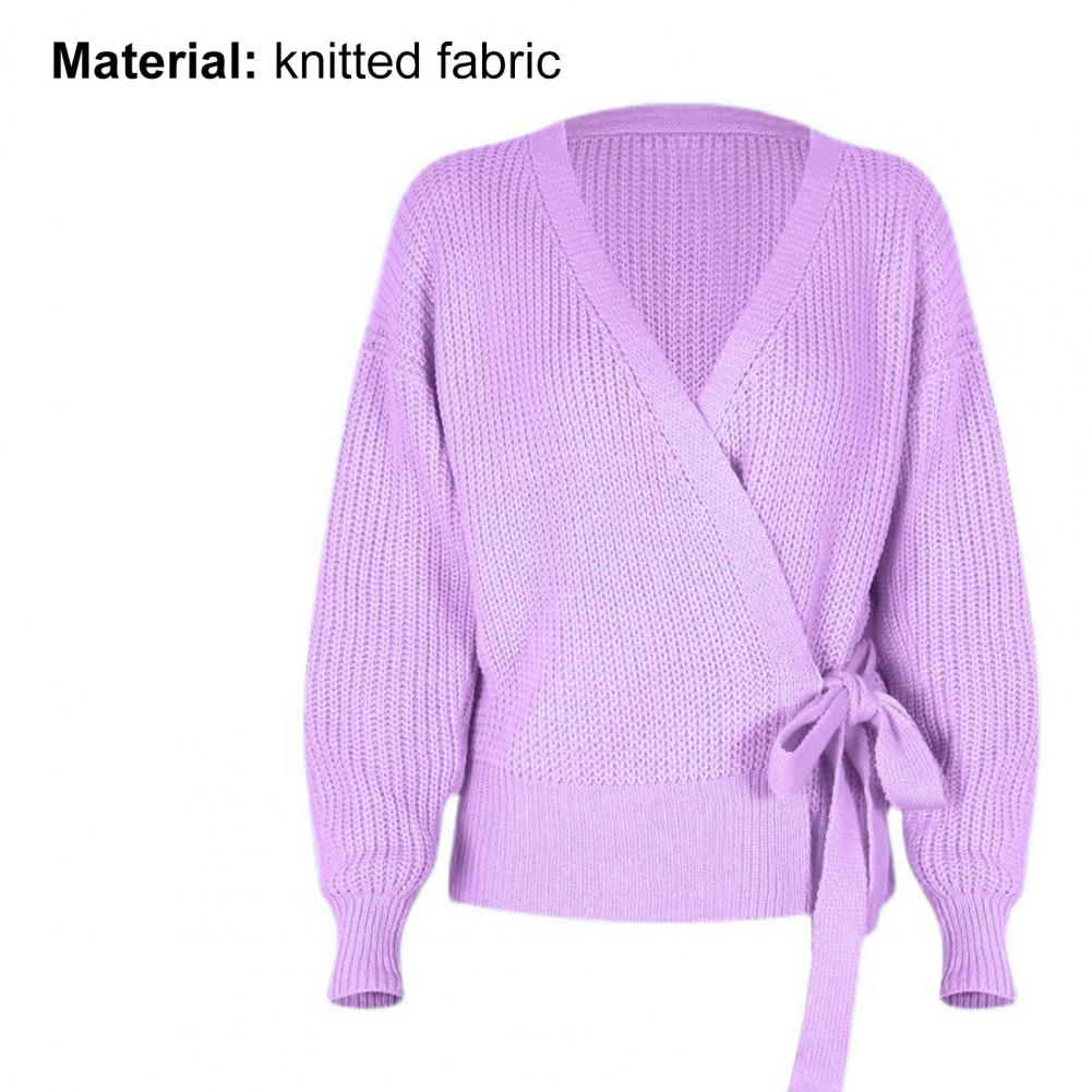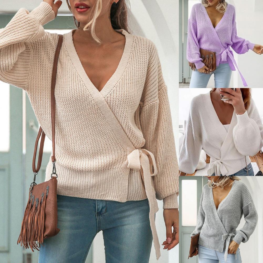 Простой свитер отлично подчеркнет вашу полную и очаровательную грудь благодаря своему дизайну с глубоким v-образным вырезом. Если вы носите этот толстый свитер на шнуровке, вы будете более сексуальны.