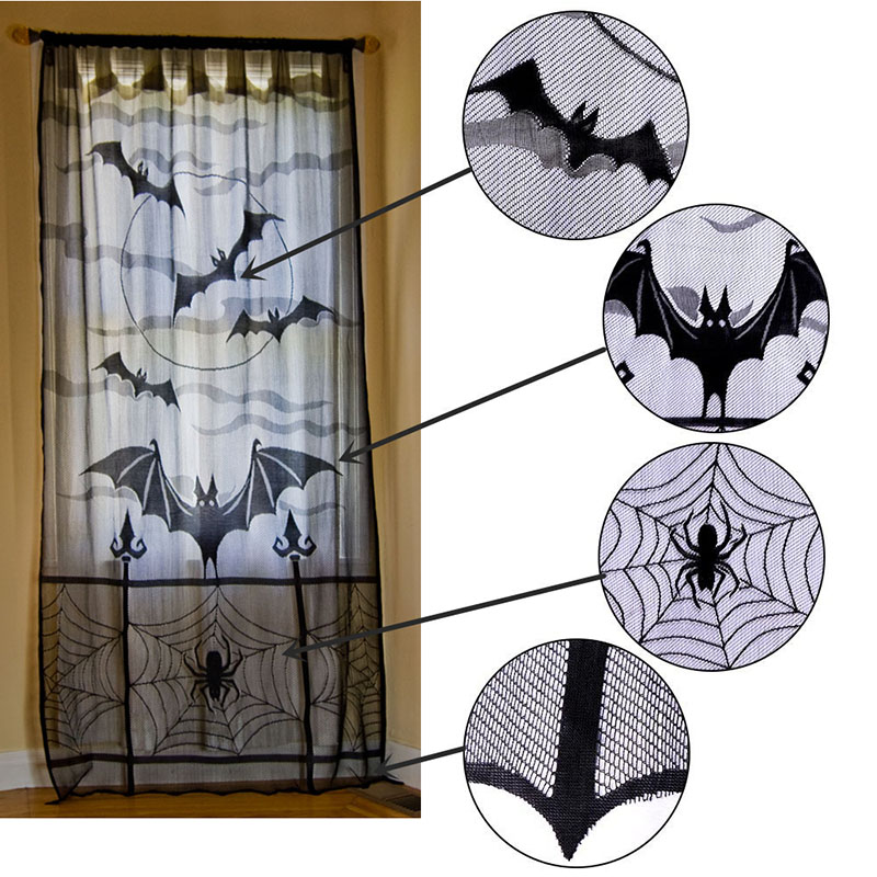 1/2 шт. Хэллоуин кружевная оконная занавеска черный паутина летучих мышей фестиваль домашнее украшение Стены Двери занавески для продвижения