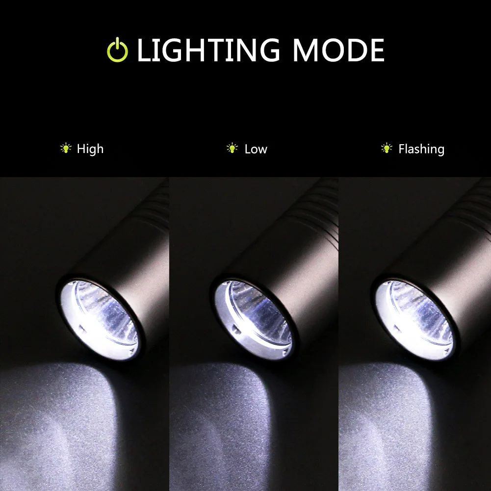 1. Выполненный с высокой яркостью T6 светильник, 3 светильник, переключаемый режим ing, Переключение режима светильник ing, вращая хвостовую ручку, каждый раз, когда вы поворачиваете его, он включит последовательность высокой яркости/низкой яркости/мигания.