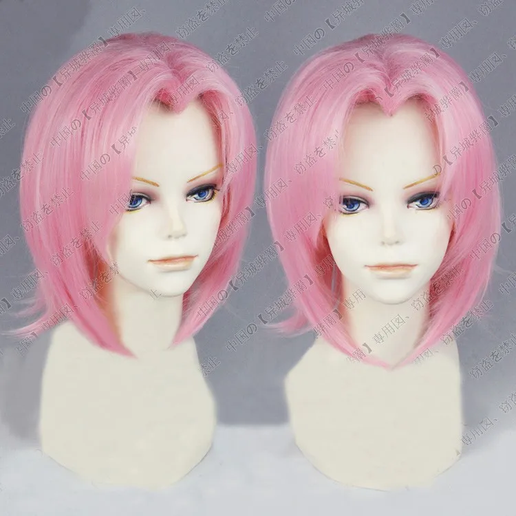 Haruno Sakura Cosplay Wig Anime Short Pink Styled Hair Heat Resistant Synthetic Cosplay Wigs + Track + Wig Cap