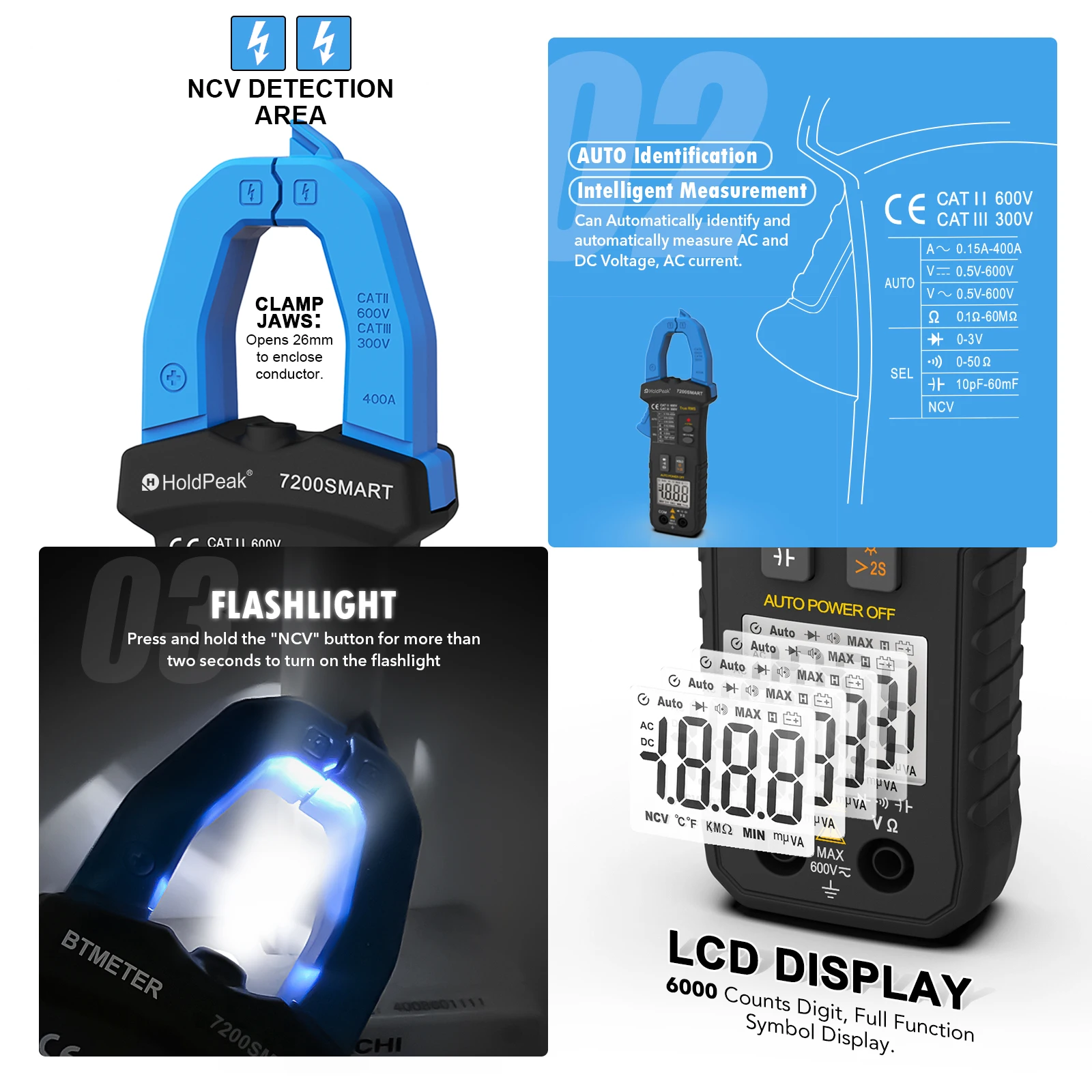 [Автоматический выбор вольтметра] BT-7200Smart Электрический тестер с автоматическими функциями облегчает устранение неполадок. Авторазряд позволяет избежать повреждения счетчика из-за неправильного выбора. Автоматически выбирается между AC и DC. 15 Минут автоматического отключения для экономии заряда батареи и продления срока службы.