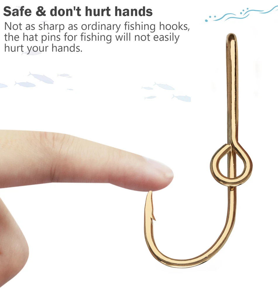 1. Эти заколки для шляпы с рыбным крючком изготовлены из высокоуглеродистой стали. Золотой цвет делает его очень блестящим. Булавка плотно прилипает к краям вашей шляпы, не нужно беспокоиться о том, что она сойдет!