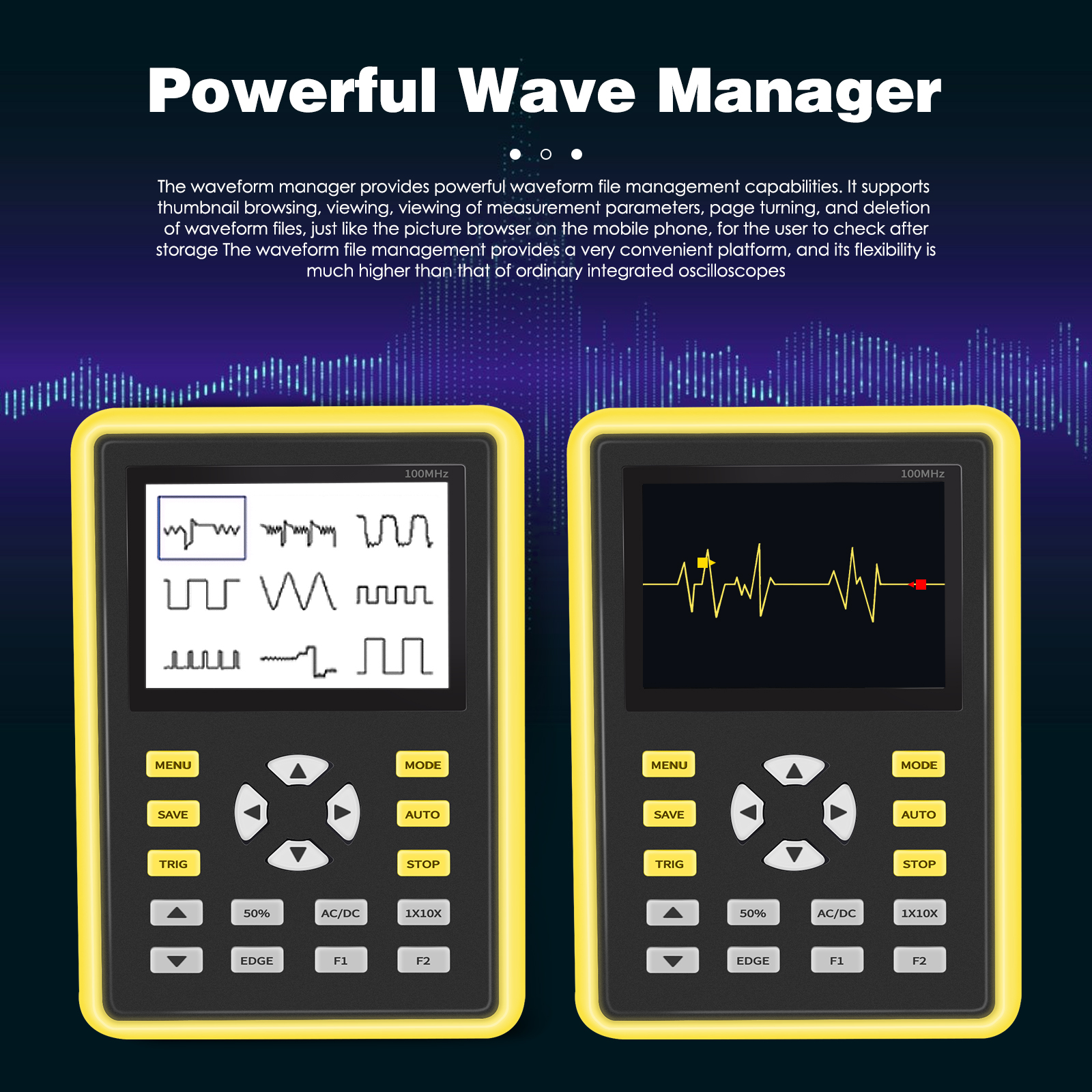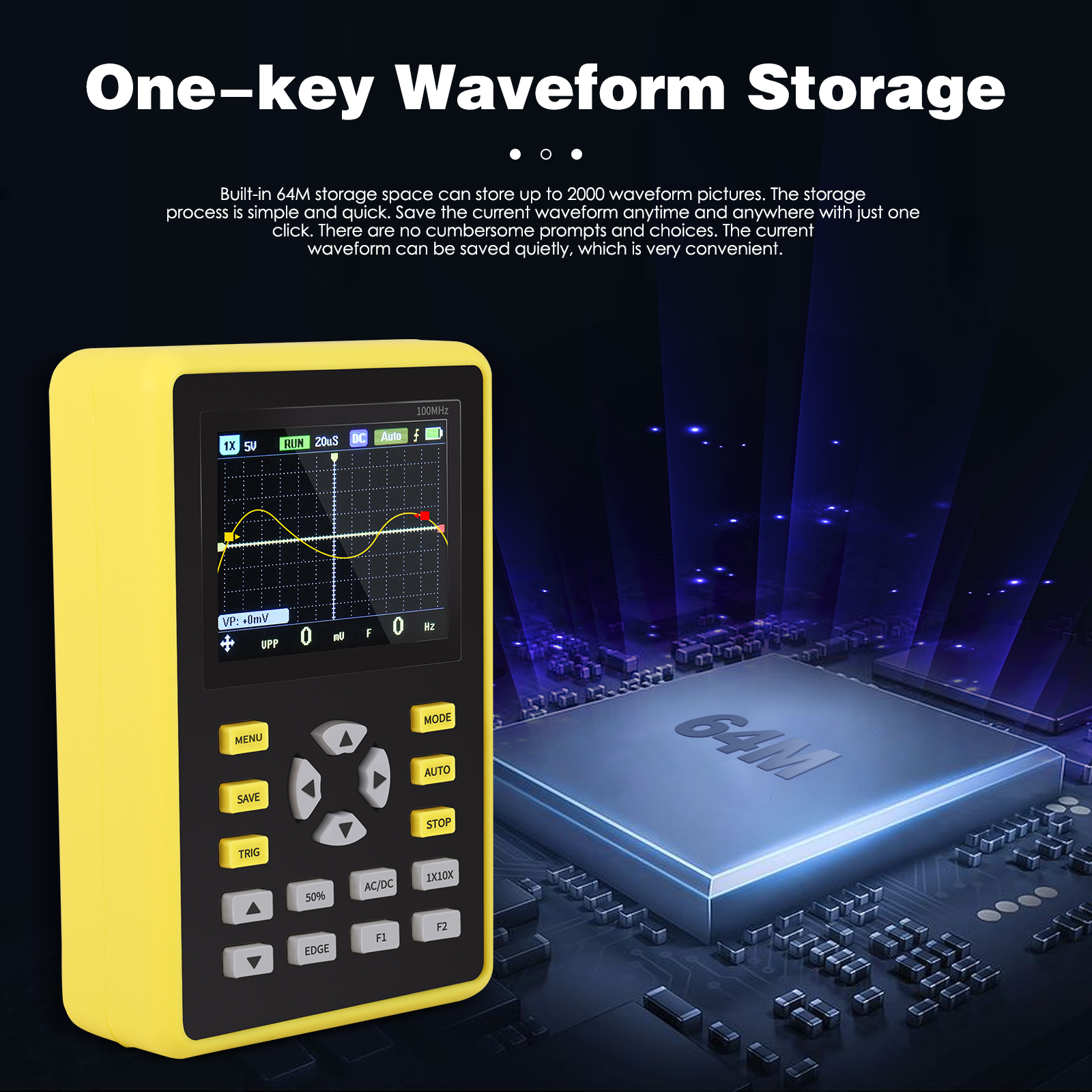 100 МГц аналоговая полоса пропускания:Полоса пропускания 100 МГц почти всемогущая в области измерения электрического сигнала, для усилителей, осцилляторов, систем автоматического управления, цифровых систем связи, протоколов шины, преобразования постоянного/постоянного тока, инверторных систем, импульсные источники питания и другие схемы проектирования, отладки и исследования могут быть легко квалифицированы, Будь то DIY производство или научно-исследовательское образование, Ремонт бытовой техники, ремонт автомобилей, разработка продукта и другие области, очень хороший выбор.