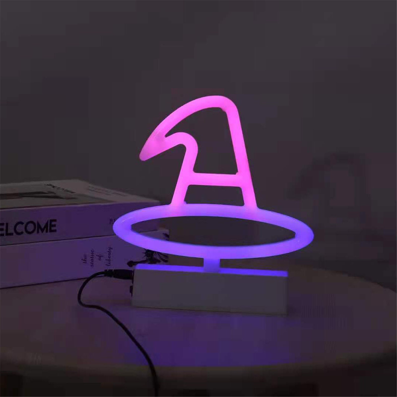 Unique design: Nice neon night light, it is a wonderful solution for your room decoration. Beautiful and modern LED decorative lamp. Add VIG OR to that side table with this LED accent light. Provides a warm light environment to your home. Optional ways to place: There is a hole behind the lamp, you can hang it on the wall or put it on the table. Wireless light, fast and easy to install. Perfect gift for Valentine's Day, kids at Christmas, New Year, birthday, party, performance, special occasions, etc. Battery operated: uses 2 AA batteries (not included) to power it up.Specification: