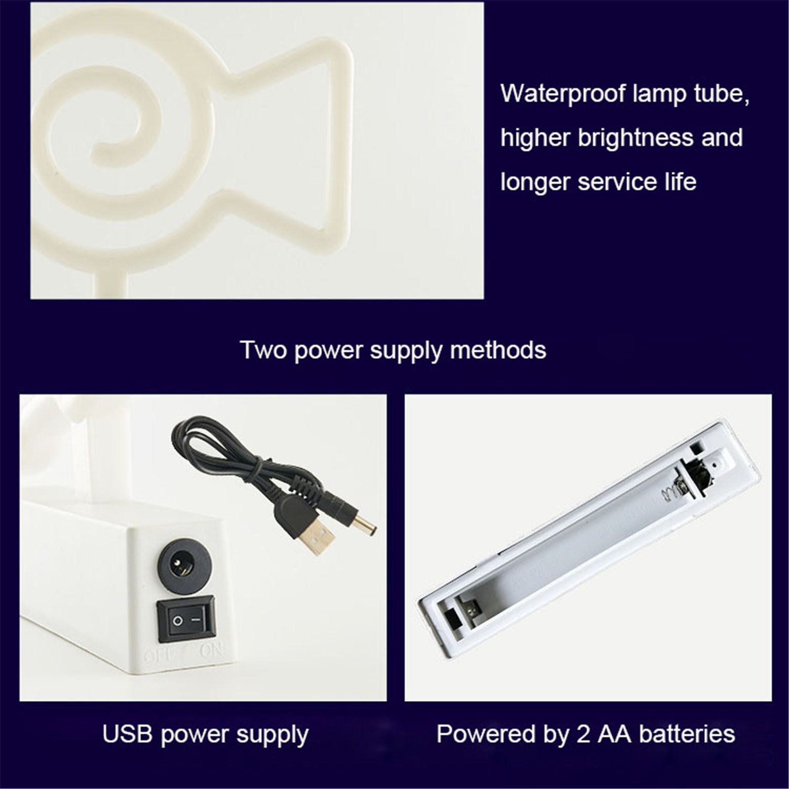 Material: plastic + LED Battery: 2 AA batteries (not included) Size: as shownContains: 1 x neon light (batteries not included)