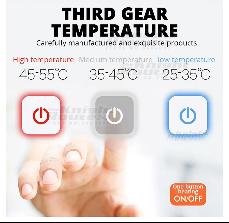 Трехуровневый контроль температуры. Диапазон низких температур 25-35 ℃, средний температурный диапазон 35-45 ℃, а диапазон высоких температур 45-55 ℃. Точка доступа в один клик