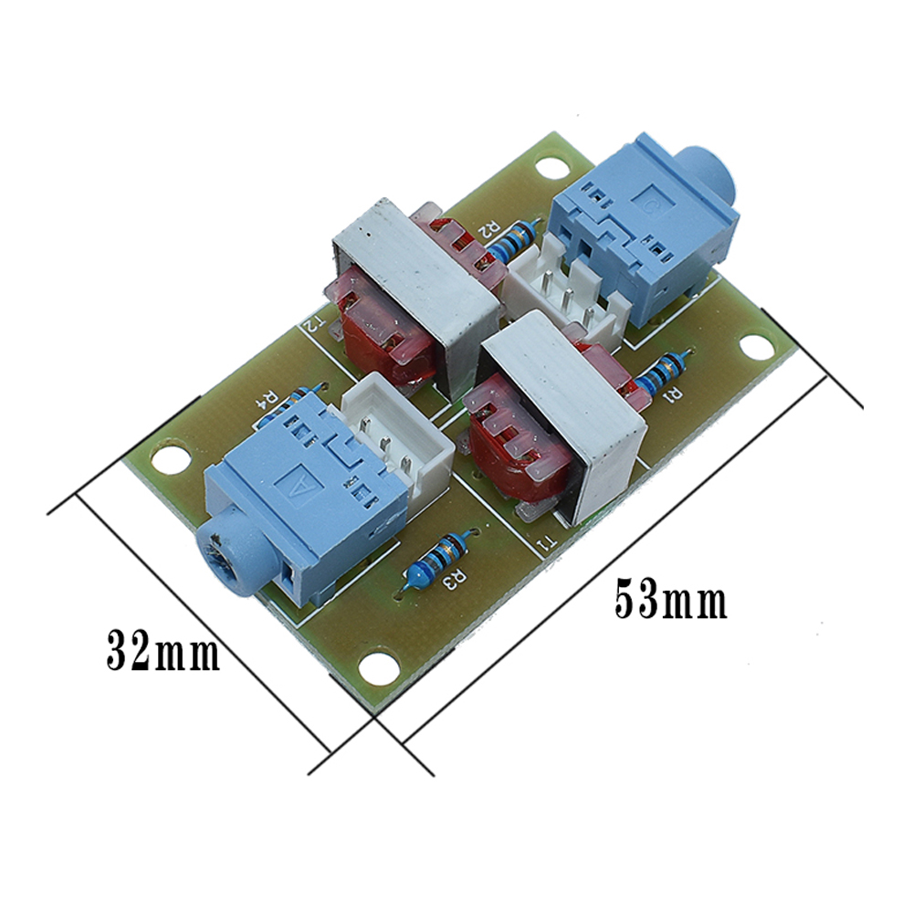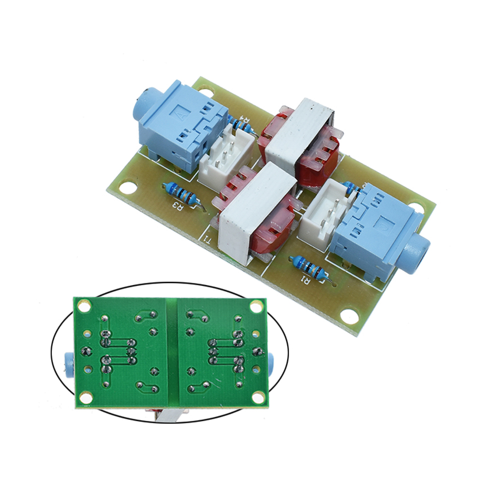 -Маленькие автомобили и другие внутренние установки. -- Выбор деталей: используются два независимых аудиотрансформатора, а материал трансформатора выбирается из авиационных материалов. -Высокая чувствительность и высокое снижение, 10-20 дБ более высокая чувствительность, чем аналогичные низкочастотные трансформаторы, полный тон, чистое качество звука. -- Дизайн линии: стерео двухканальный независимый дизайн, спецификации печатной платы: 45 мм X 30 мм, очень маленький, подходящий -- метод подключения: два способа подключения, что может быть вход и выход через 3,5 мм для наушников, а также может быть подключен непосредственно с помощью двух синий проводки гнезда. -Основная функция: устраняет текущий звук. Общий аудио-трансформатор, изолированный от земли, устраняет шум тока от общего пространства AUX. Выходные и выходные линии заземления изолированы трансформатором и нет общей земли.