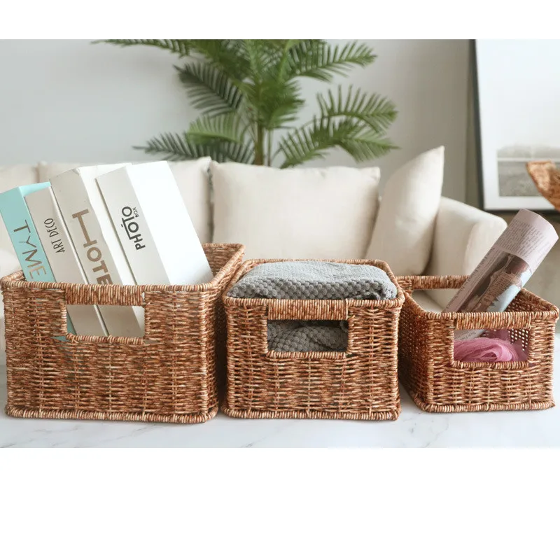 Ручная прямоугольная ротанговая плетеная корзина фруктовый чай закусочный хлеб для пикника косметический ящик для хранения кухонные бытовые инструменты