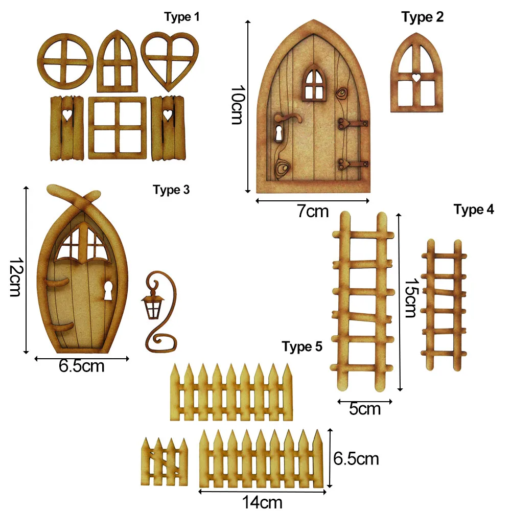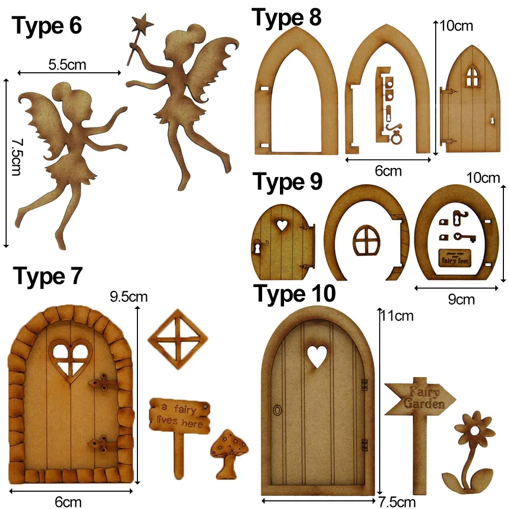 Трехмерный деревянный Сказочный дверной набор, состоящий из: сказочной арки с замочной скважиной и глазком, дверной каркас с петлями в форме сердца, милая подвесная вывеска с надписью «shh...fairy sleeping», отдельным Арочным окном и парой сказочных тапочек.