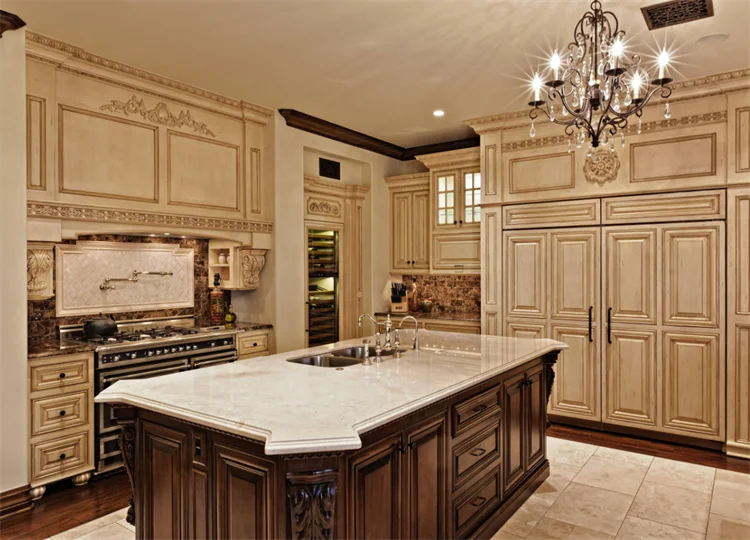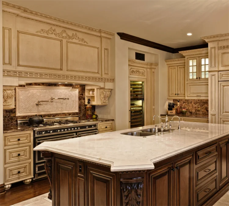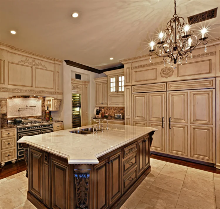 Американский роскошный изготовленный на заказ белый лак из цельного дерева кухонные шкафы набор Классический с раковиной и большим островом