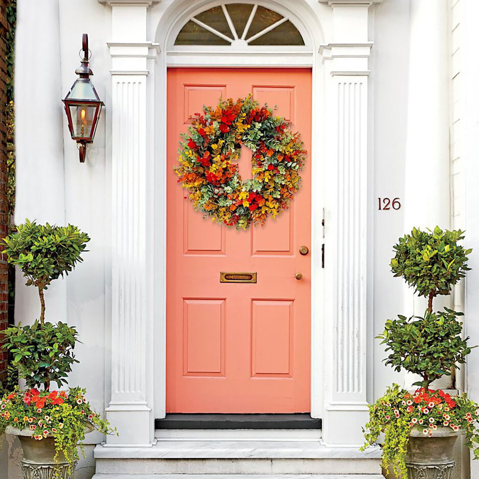 30x30 см осенний тематический дверной венок из искусственного соснового клена, гирлянда из деревянного ротанга, украшение для дома на День Благодарения