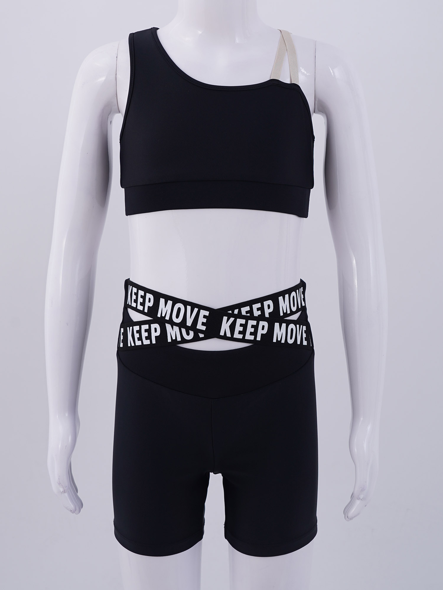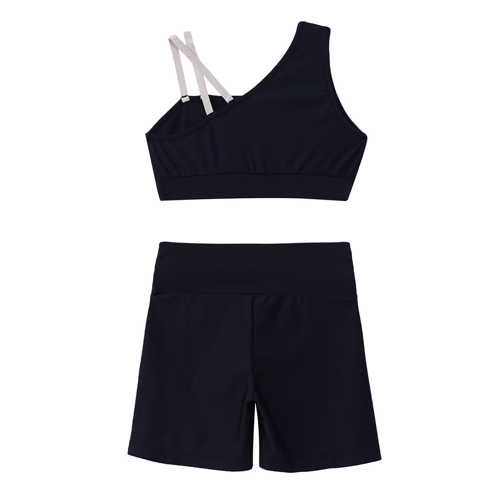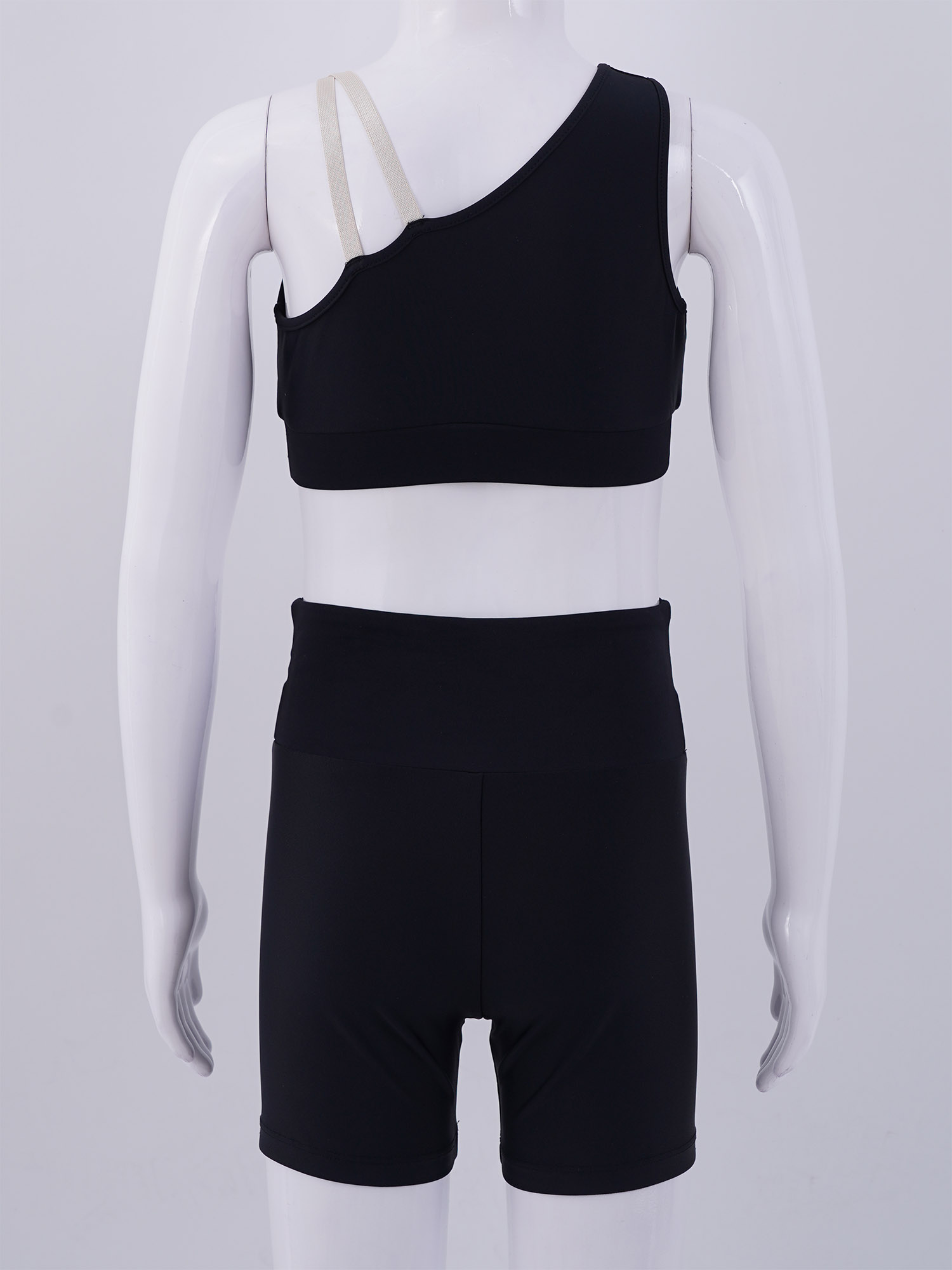 Детский комплект из 2 предметов для девочек: Асимметричный укороченный топ с открытыми плечами и шорты с высокой талией, спортивная одежда.