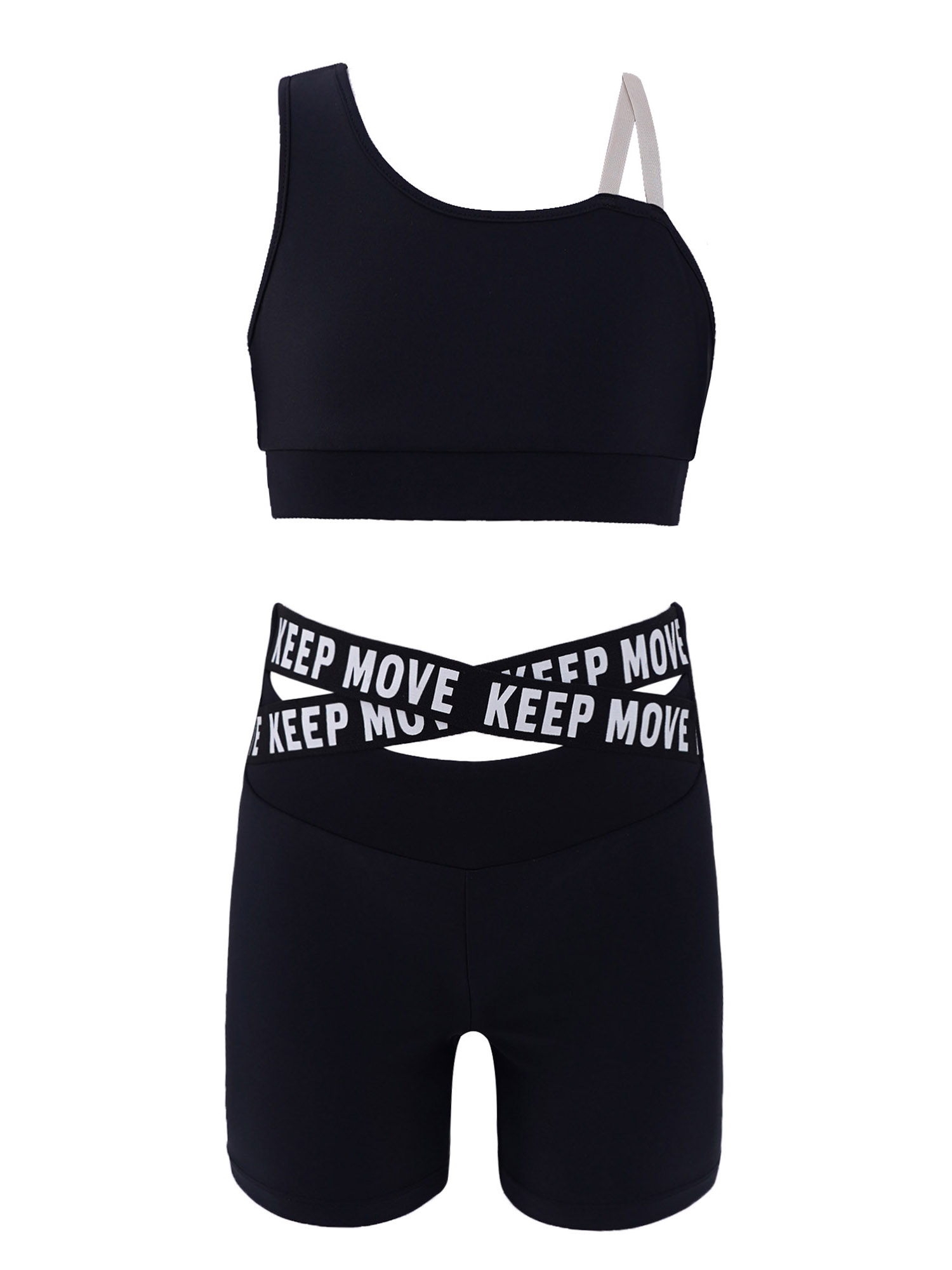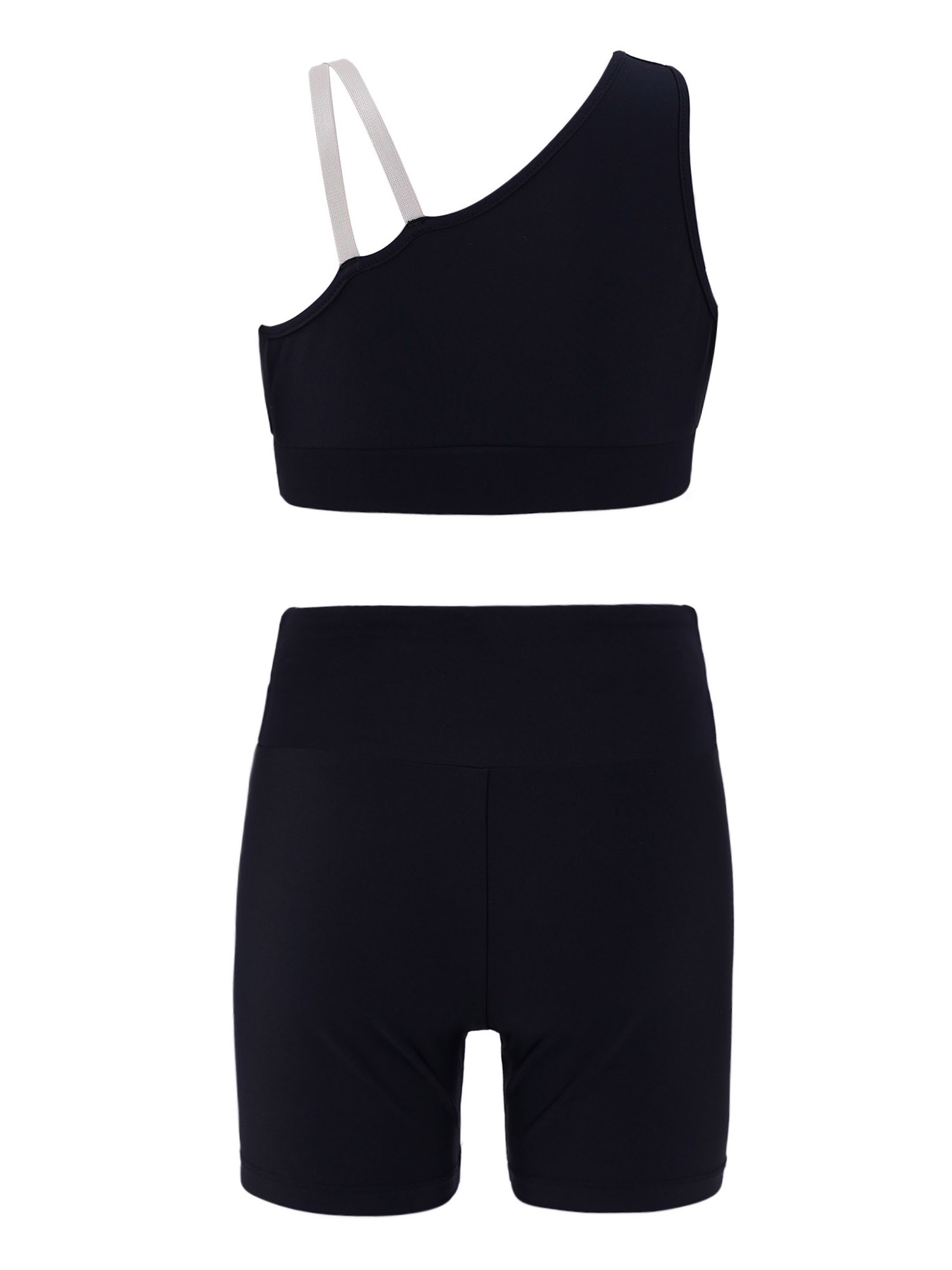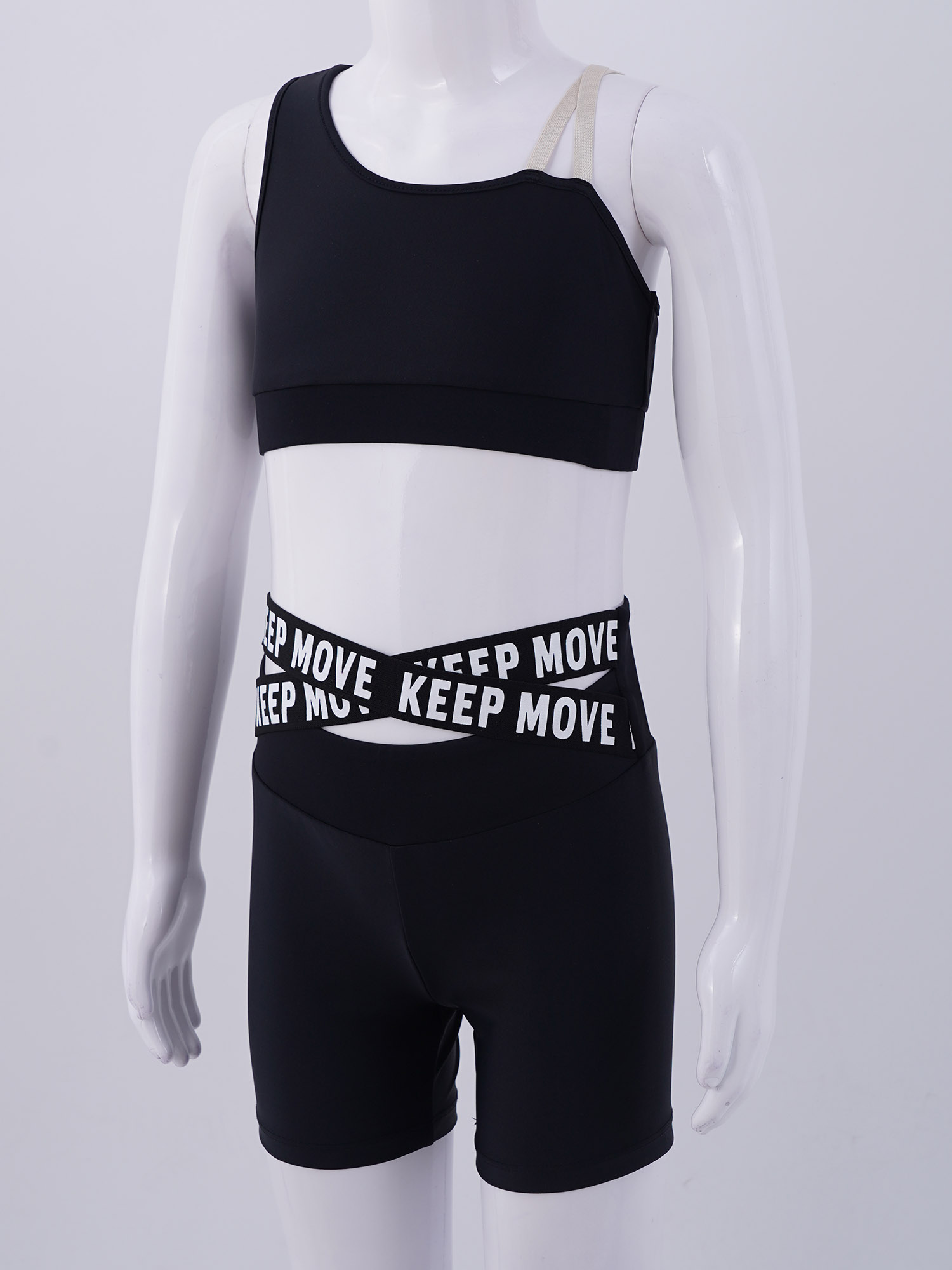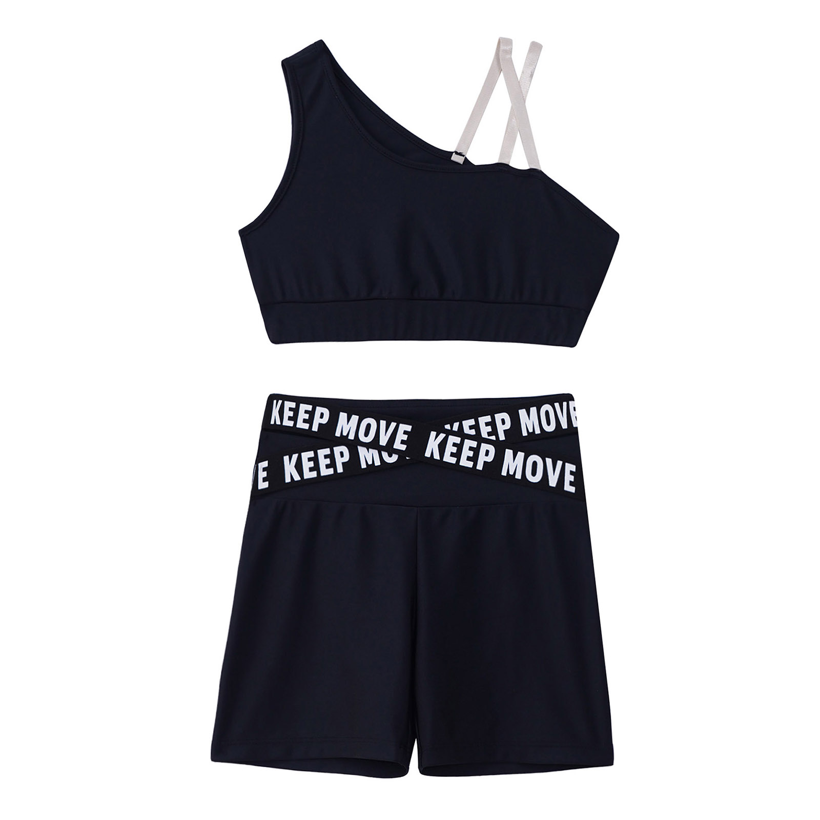 Детский комплект из 2 предметов для девочек: Асимметричный укороченный топ с открытыми плечами и шорты с высокой талией, спортивная одежда.