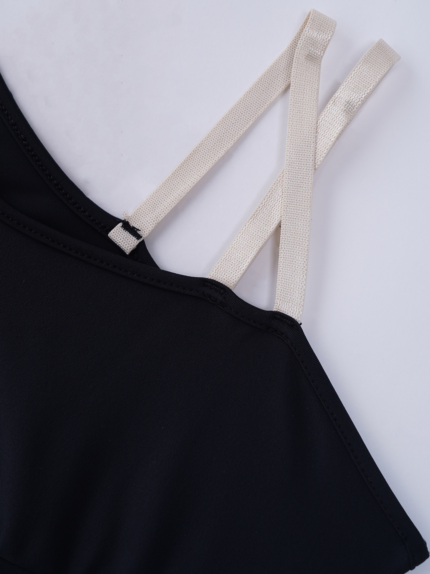 Асимметричное плечо; Высокая талия; Принт с буквами; Пояс с крестом; Сделает девочку модной и красивой.