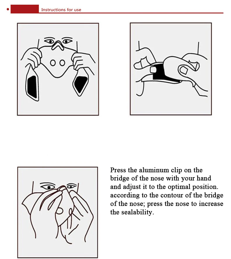 4. Отрегулируйте фиксированное положение алюминиевого зажима для носа