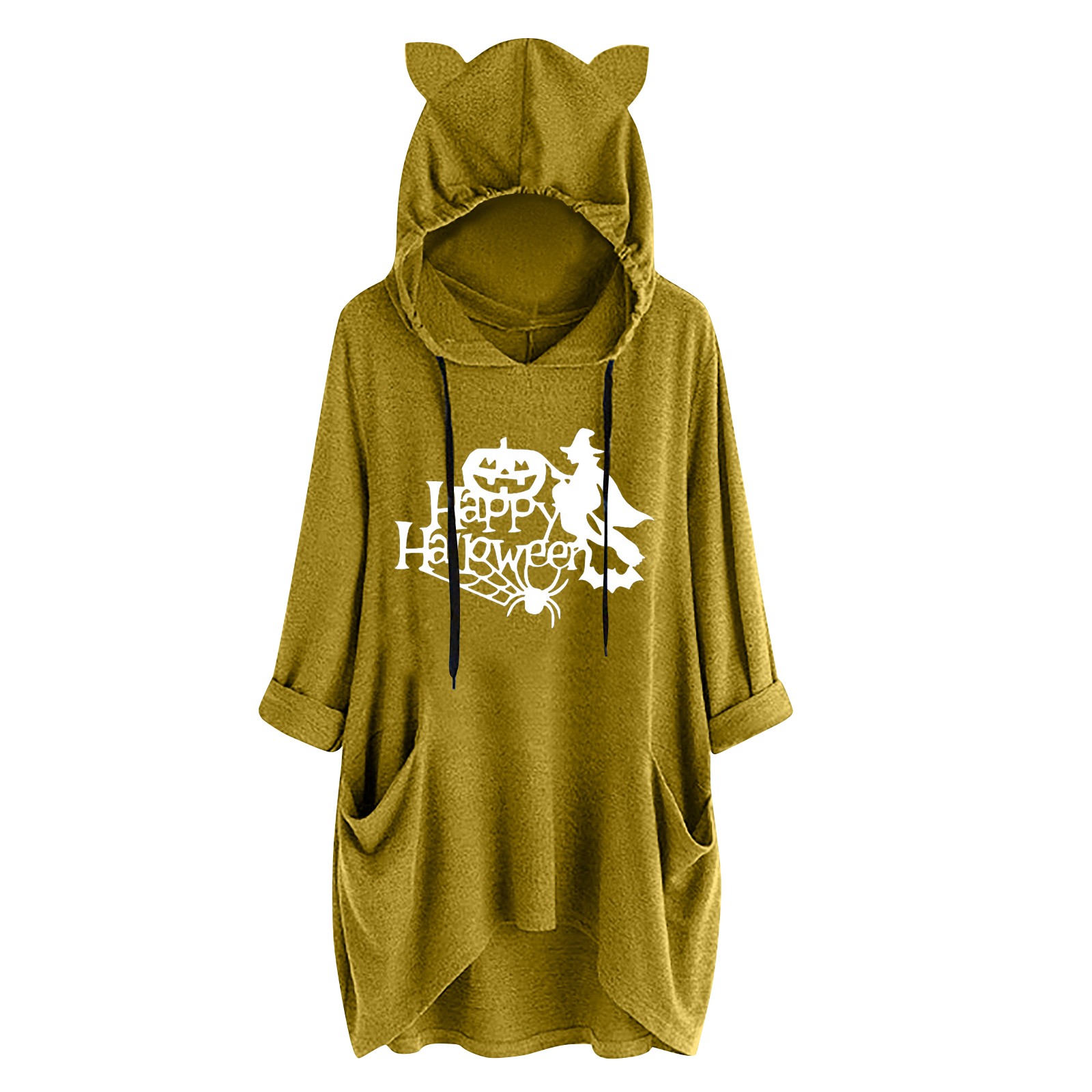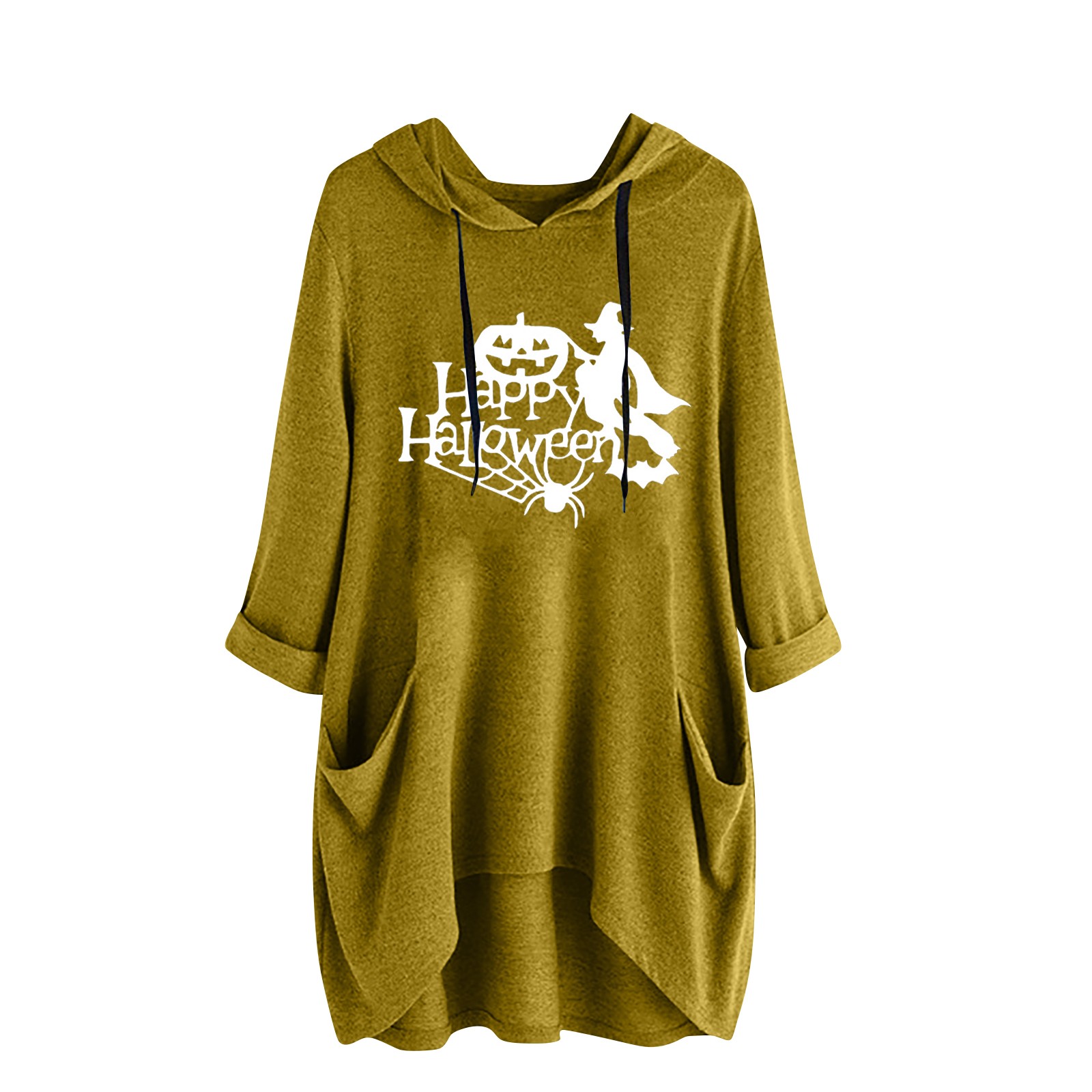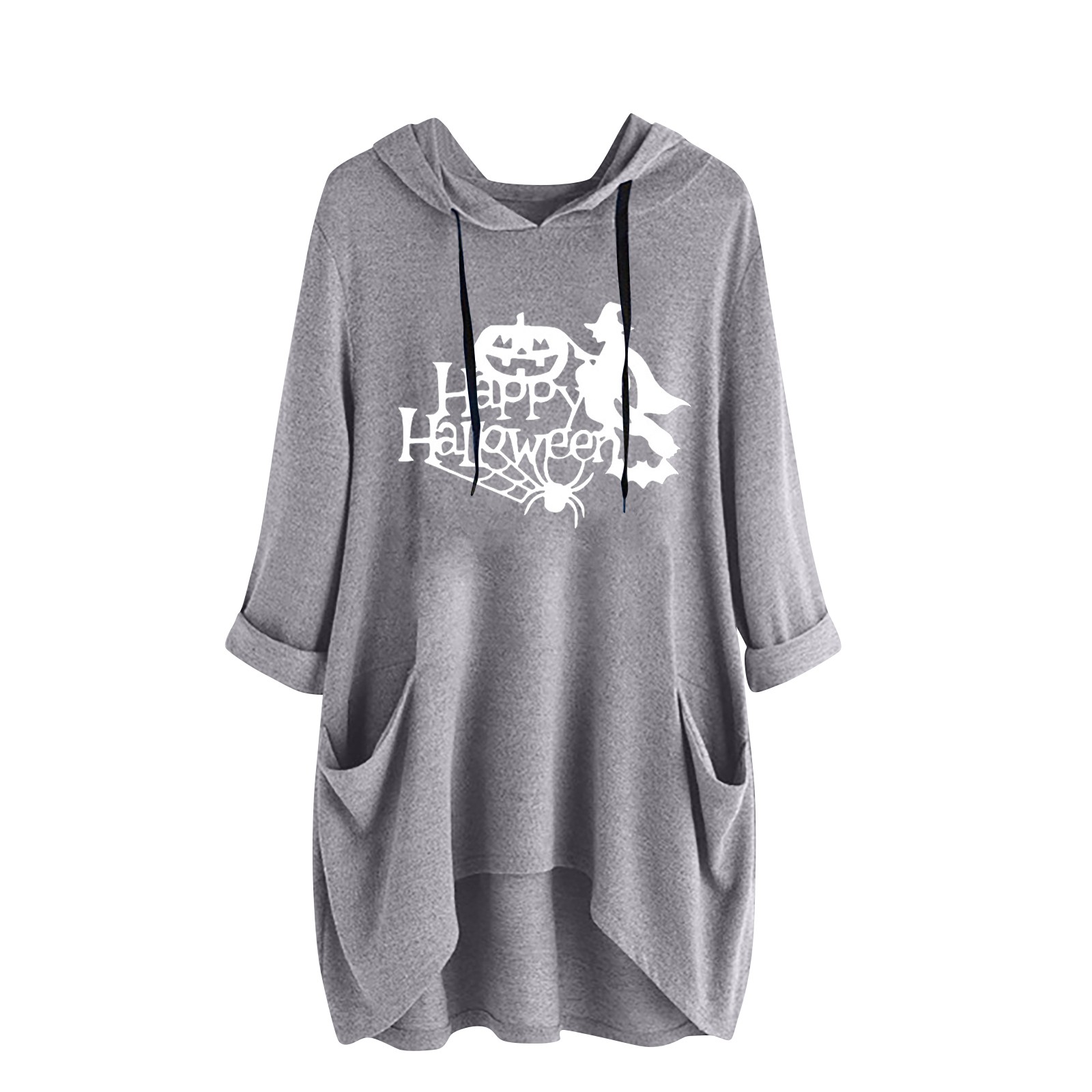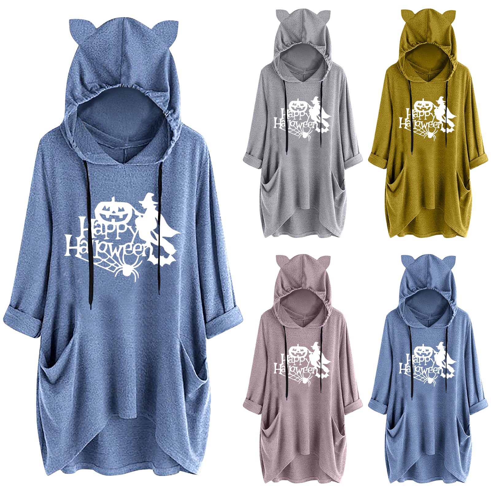 Модная женская Повседневная рубашка на Хэллоуин с принтом тыквы и капюшоном с длинным рукавом и карманом