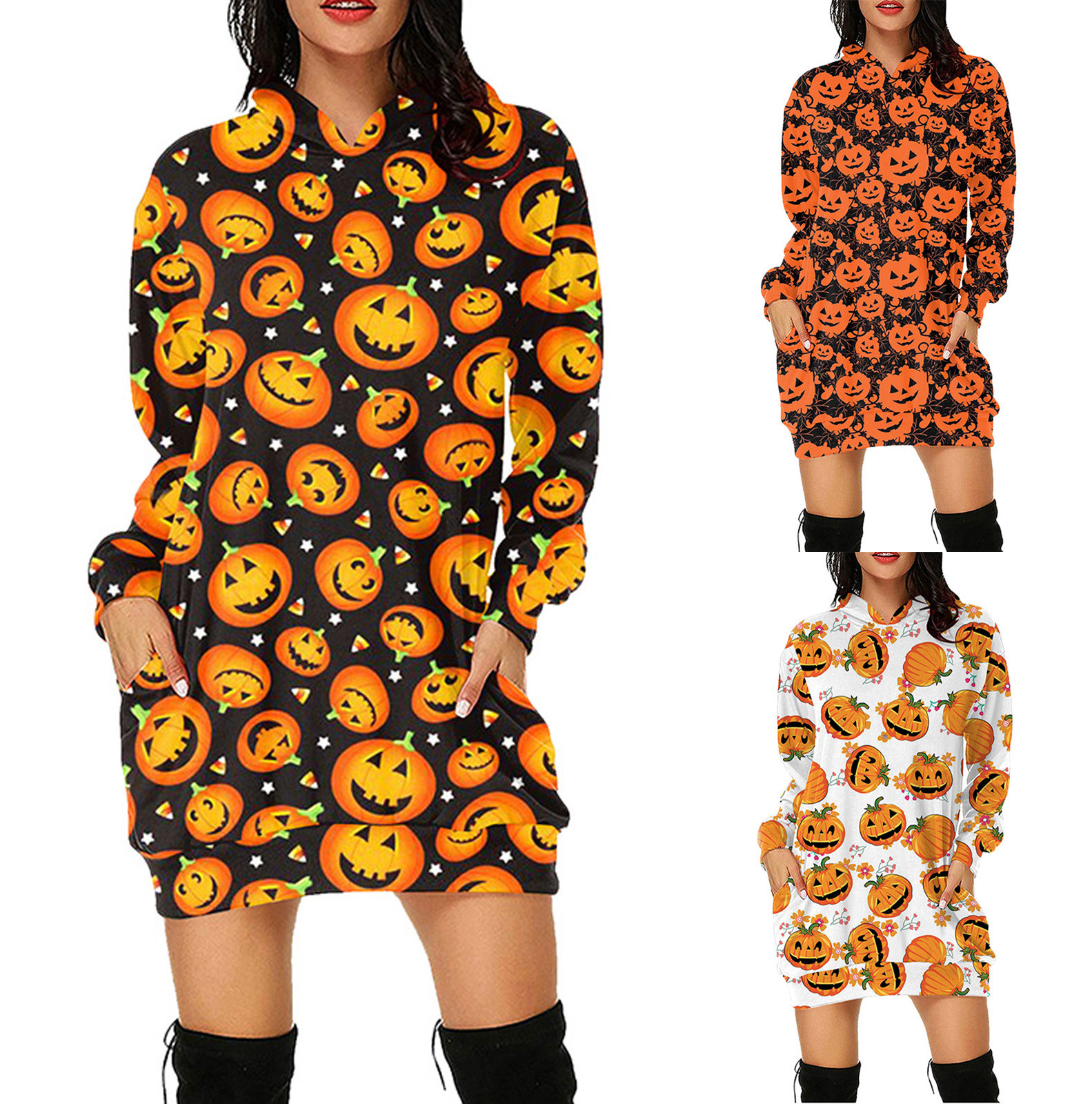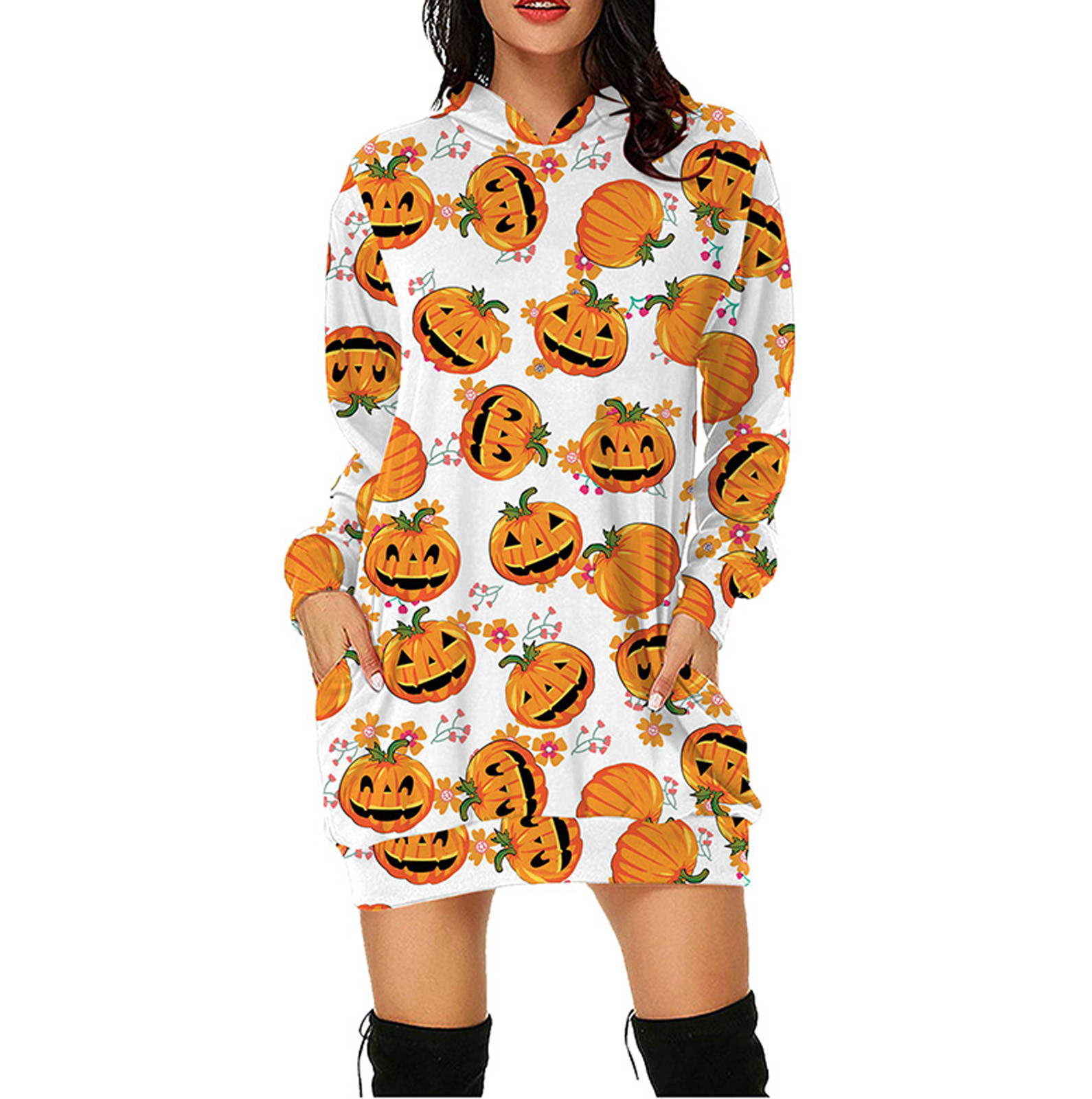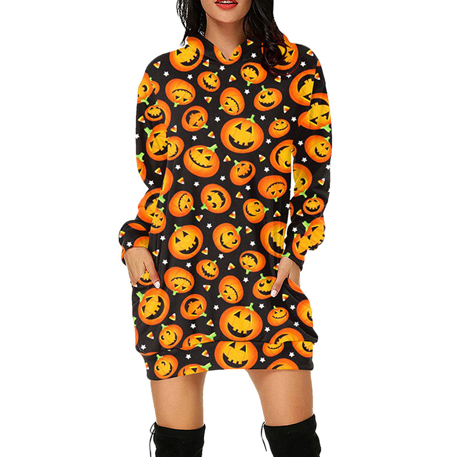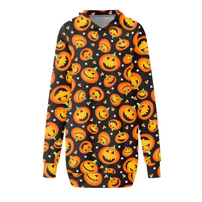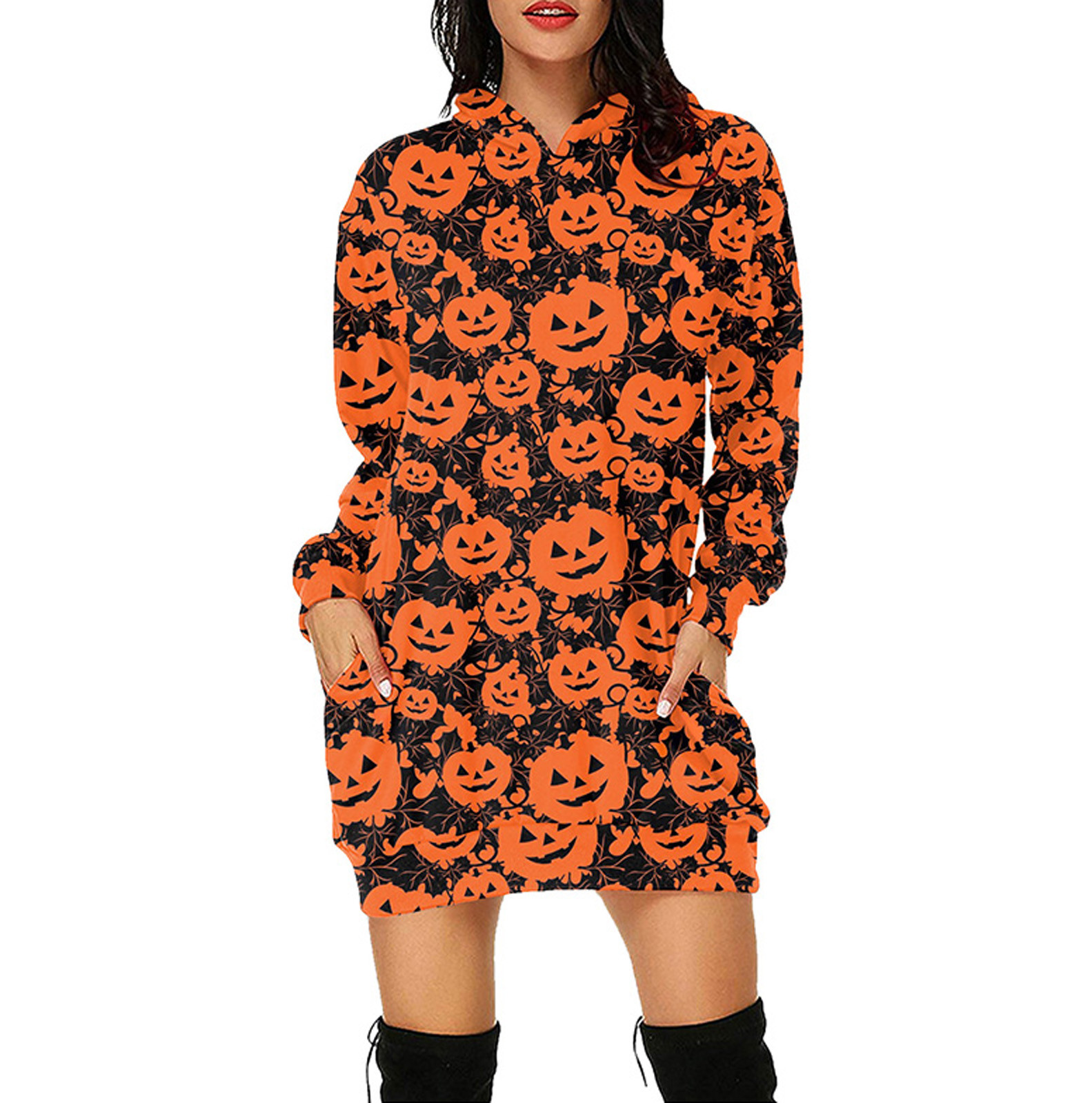 Женское свободное платье-свитер с капюшоном и карманом для Хэллоуина