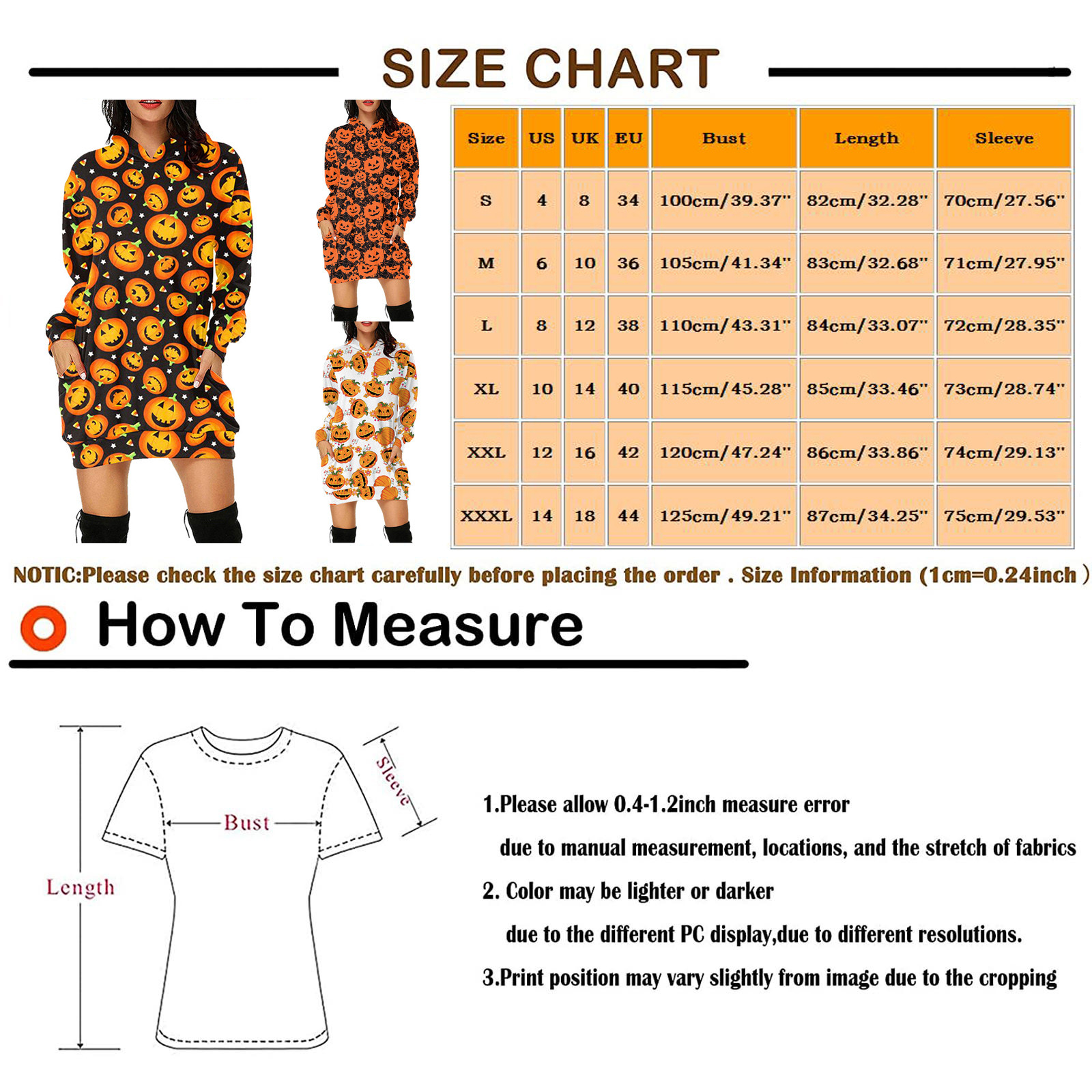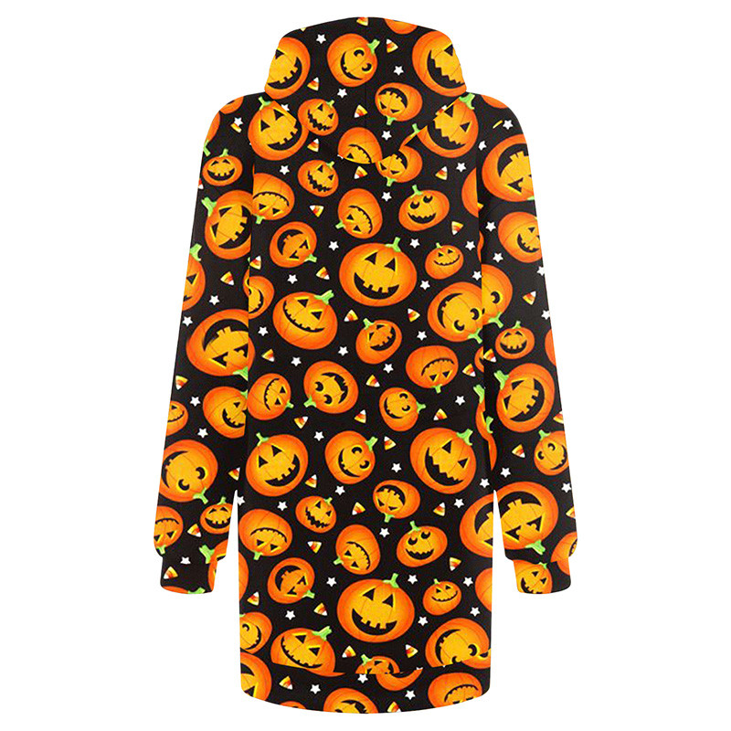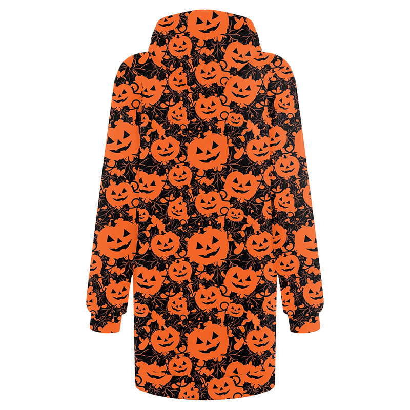 1. Дизайн: длинный рукав, карман с принтом на Хэллоуин, свободный крой, прострочка.
