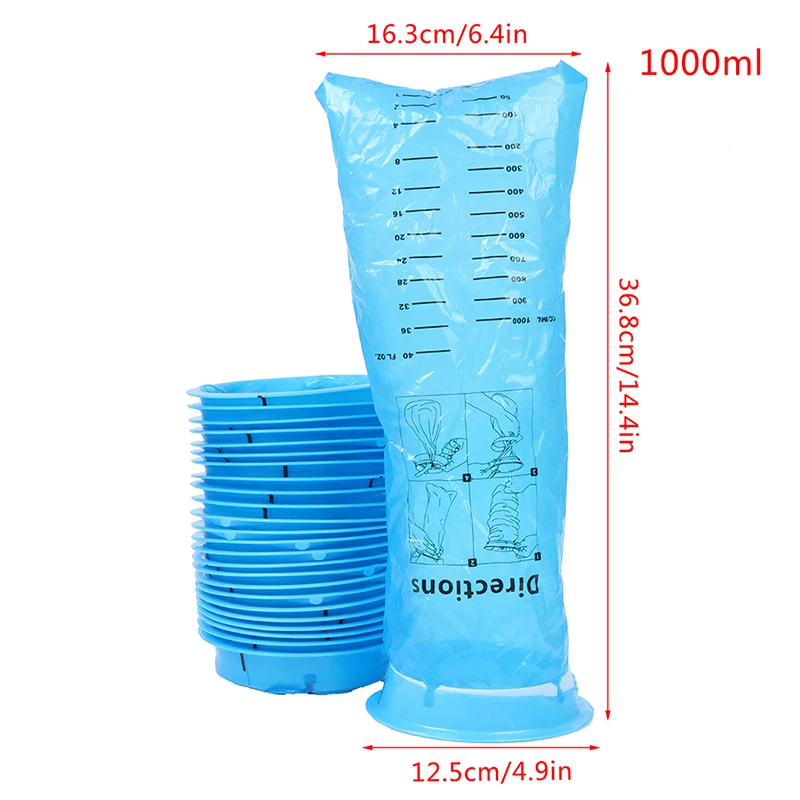 Всегда будьте готовы для чрезвычайных ситуаций с мешками emesis рядом. Они идеально подходят для больниц, клиник, комнат для восстановления, самолетов, лодок и экскурсий, заднего сиденья Uber или такси, чартерных капитанов, тренажерных залов и фитнес-инструкторов, школьные водители автобусов и школьные учителя. Храните эти синие сумки в руке на утренний день после вечеринок и общественных мероприятий. Их маленький, компактный размер легко взять и использовать в любое время. На внешней стороне мешка есть маркировка, которая измеряет cc/ml, а также унции.