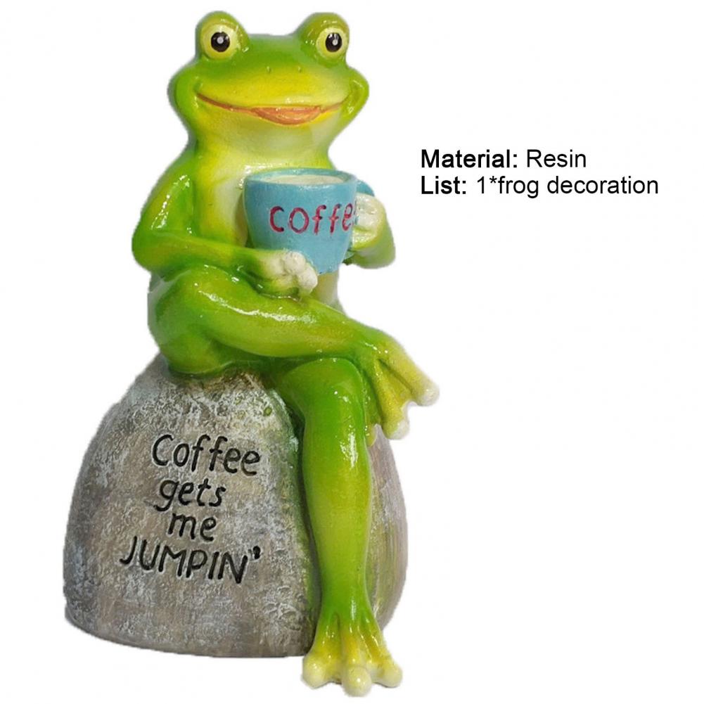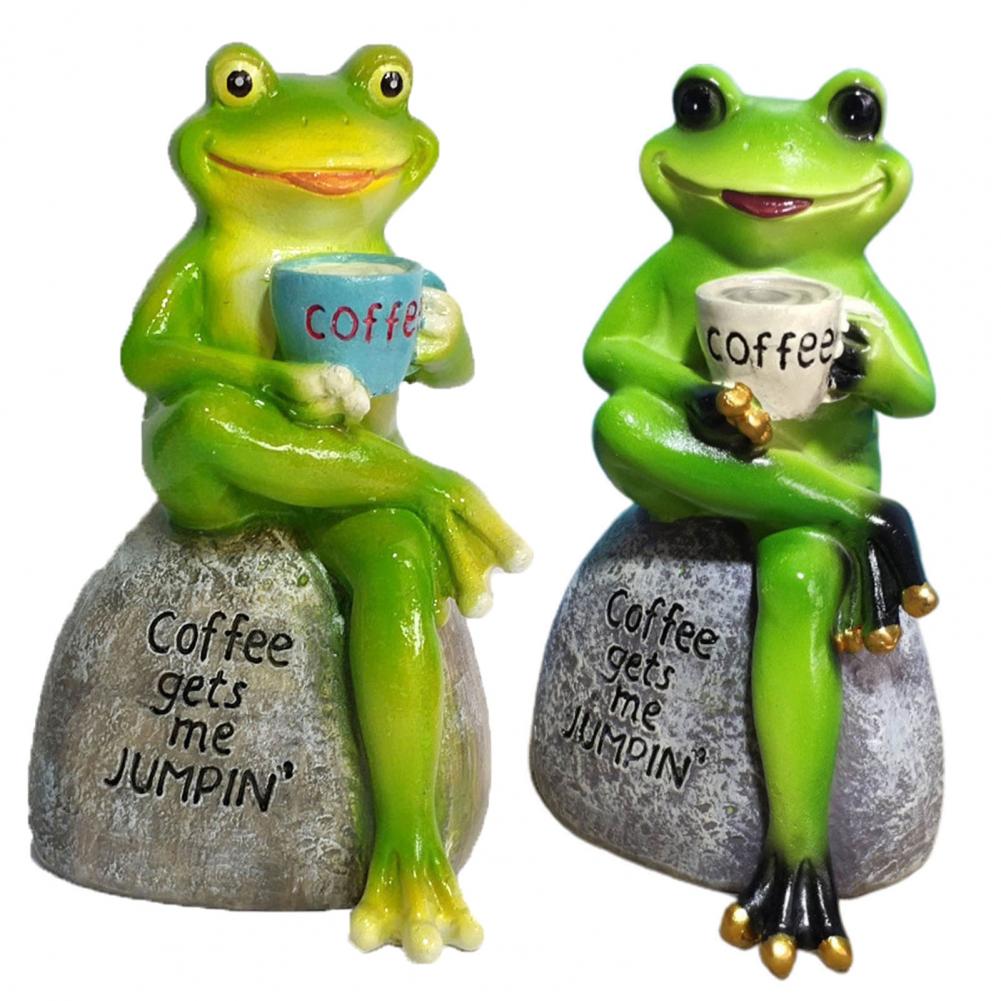 Милые смоляные сидящие лягушки, сидящие на каменных фигурах, скульптура из смолы, питьевая кофейная скульптура, украшения для сада