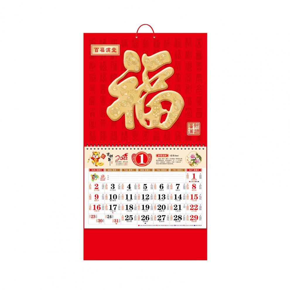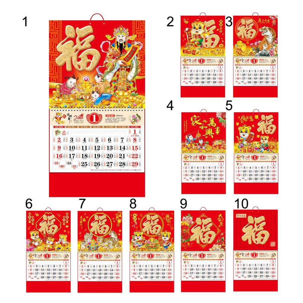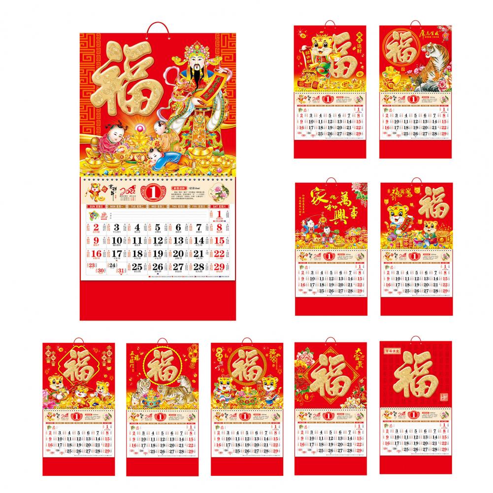 Китайский календарь свободный лист декоративный благоприятный тисненый 2022 год Тигра разборчивый Китайский традиционный календарь для дома