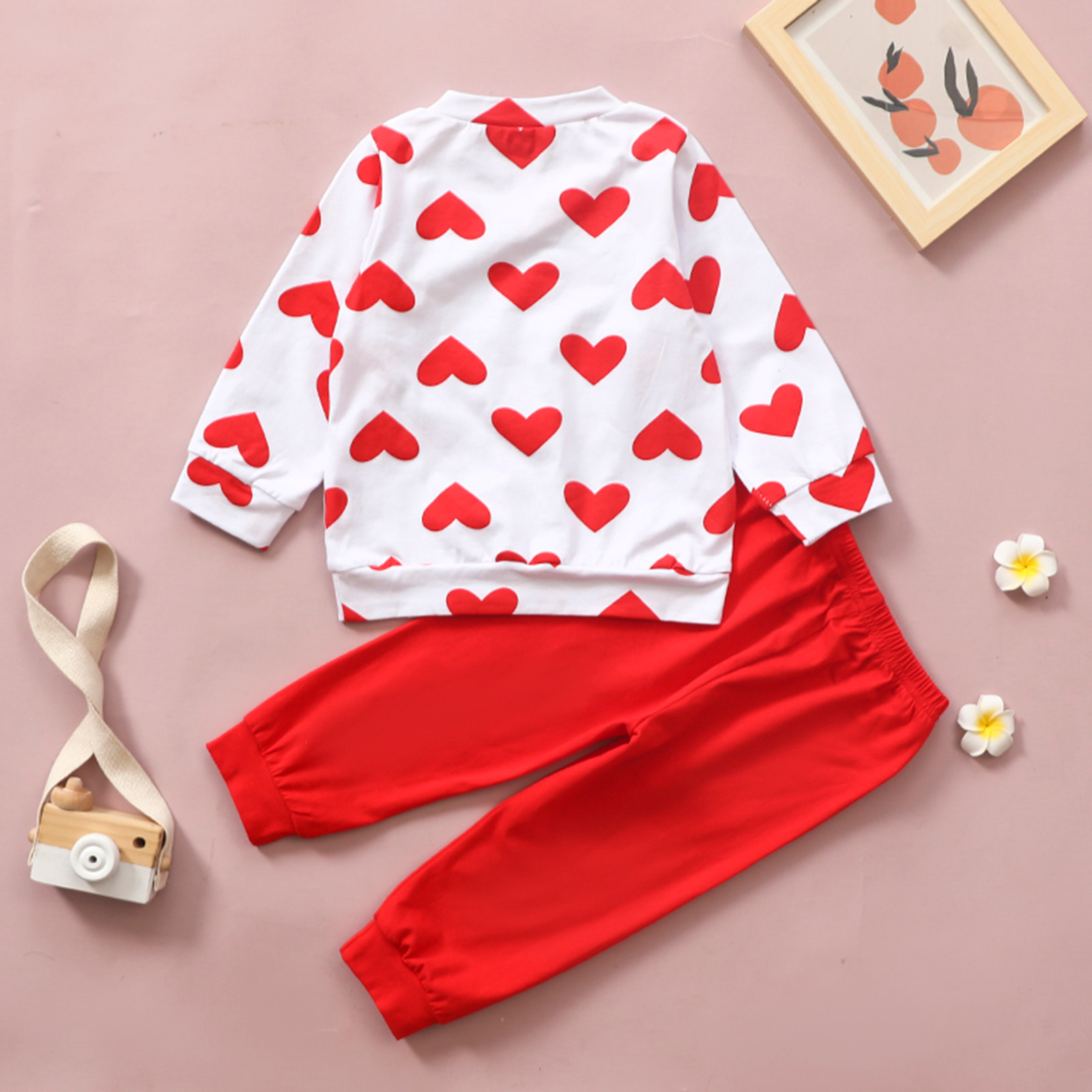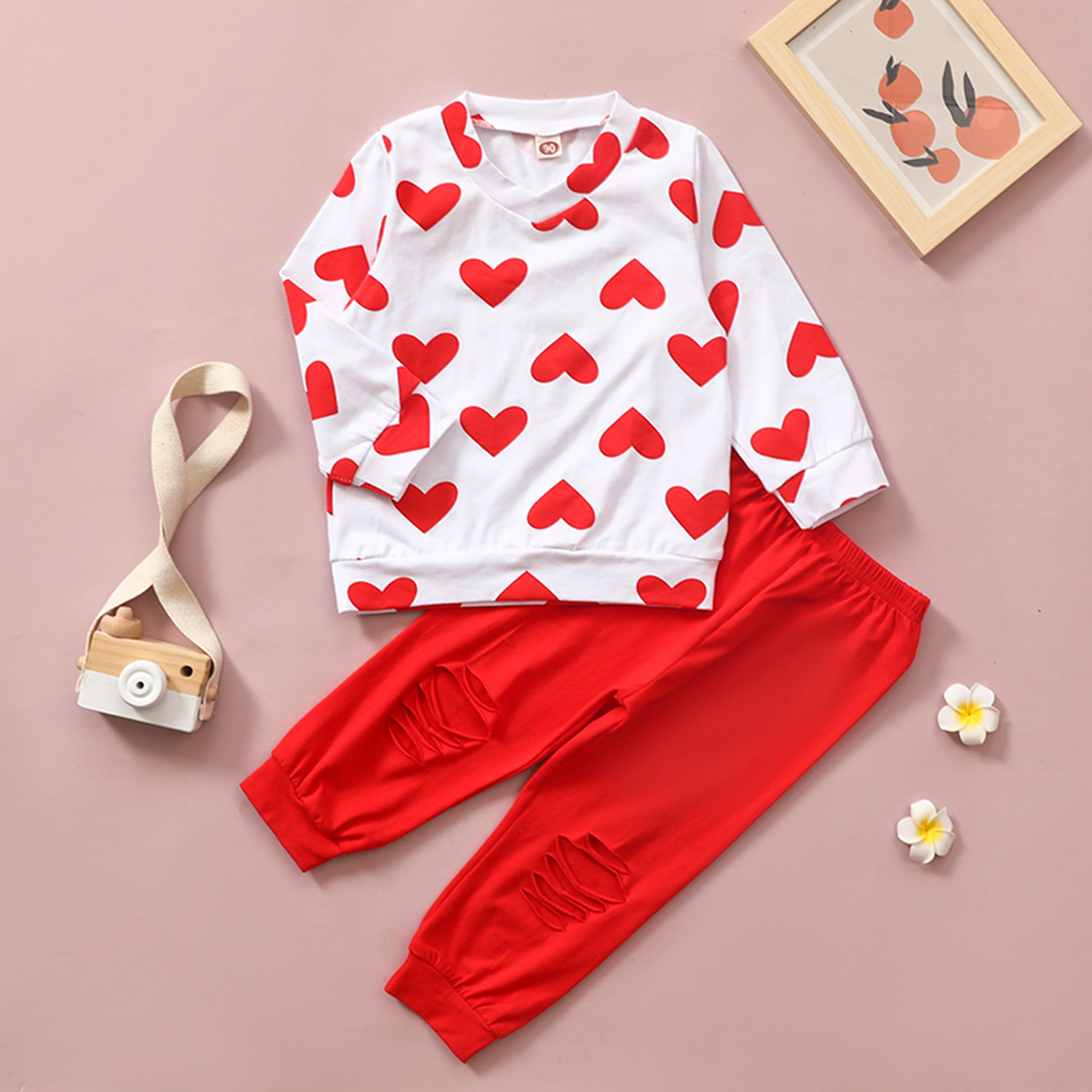 Одежда для маленьких девочек; Принт в форме сердца; Футболка; Комплект с рваными штанами