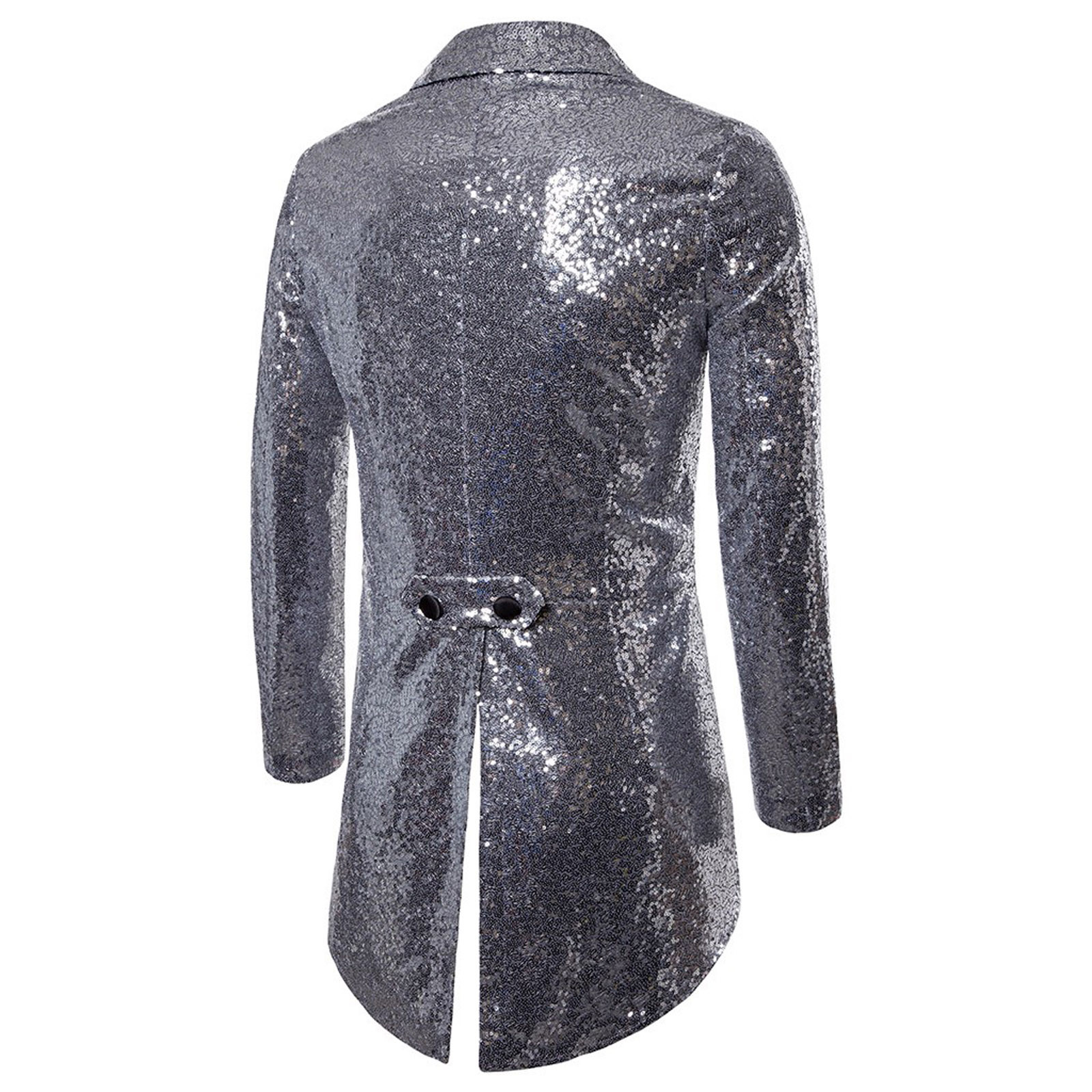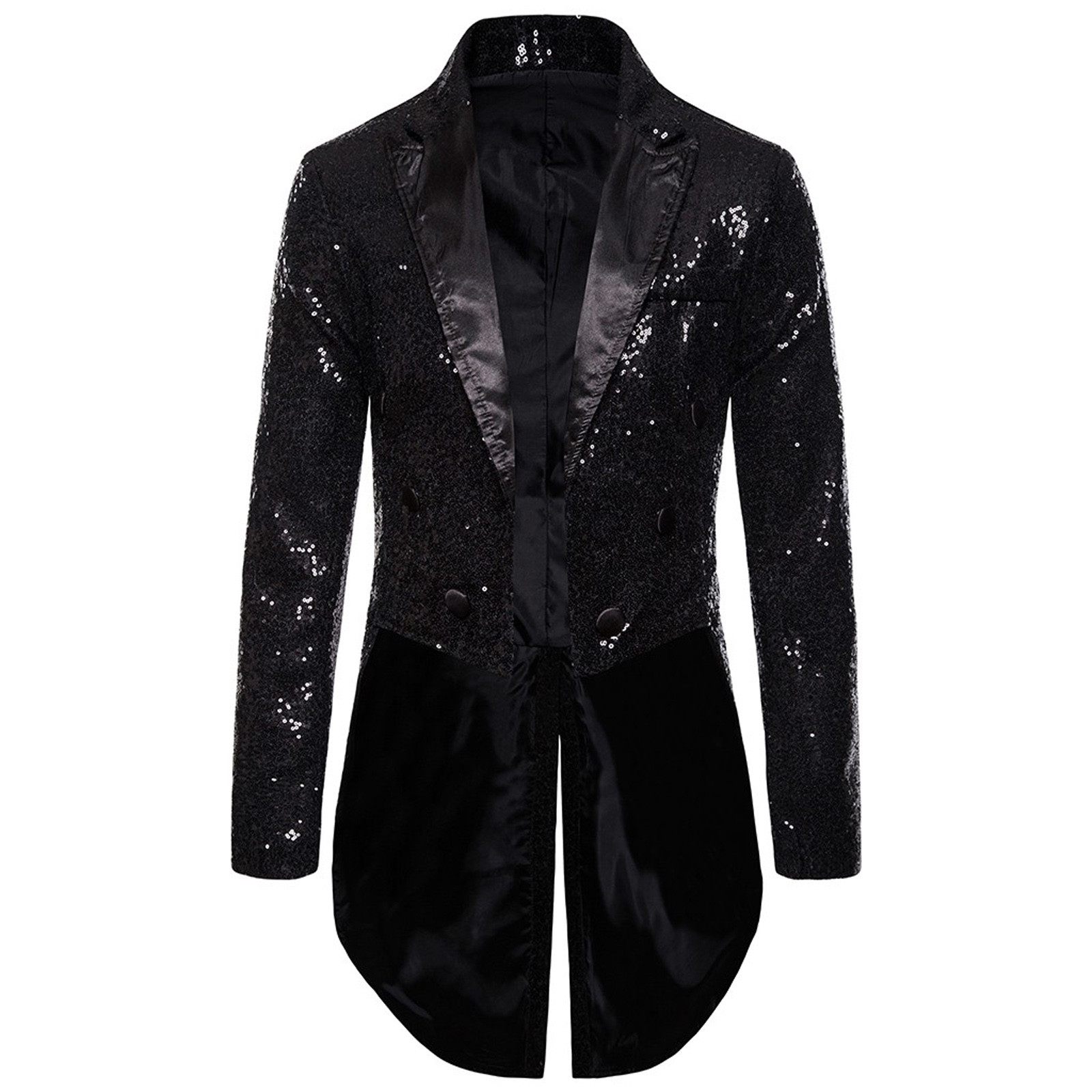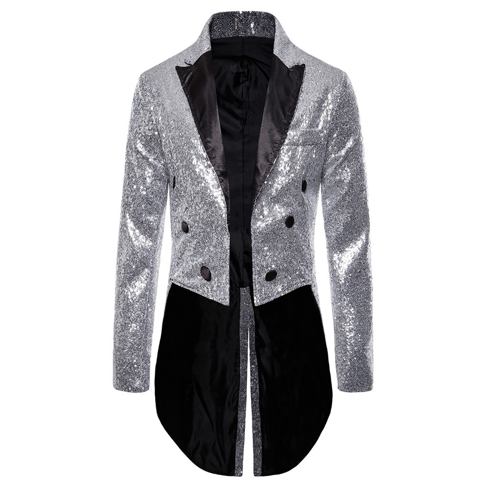 Мужской вечерний смокинг, украшенный пайетками, смокинг с отворотом, костюм с длинным рукавом