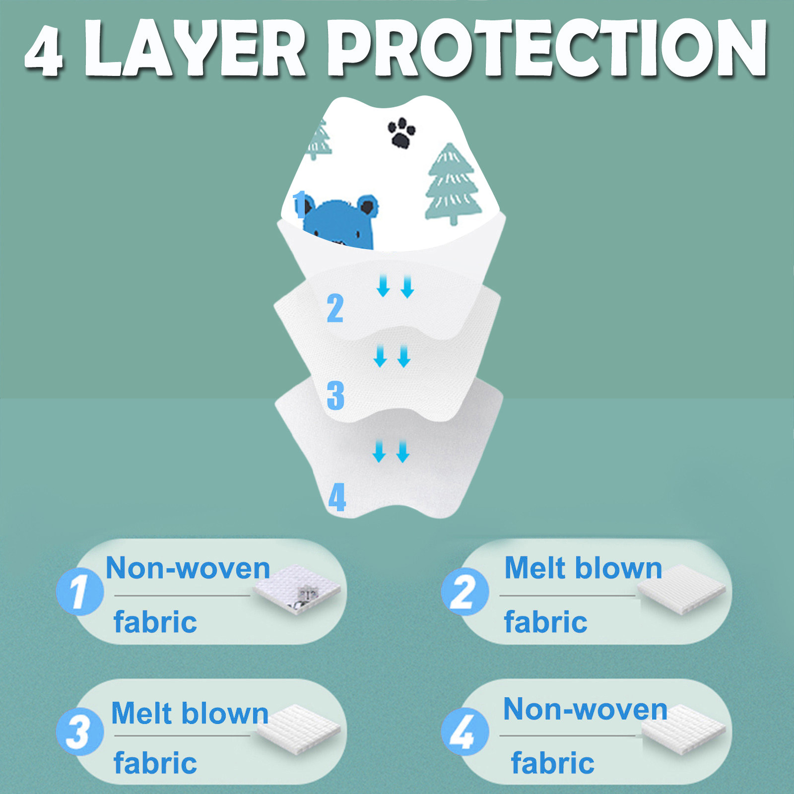 Детская одноразовая маска для лица, 4 слойные маски для ушей