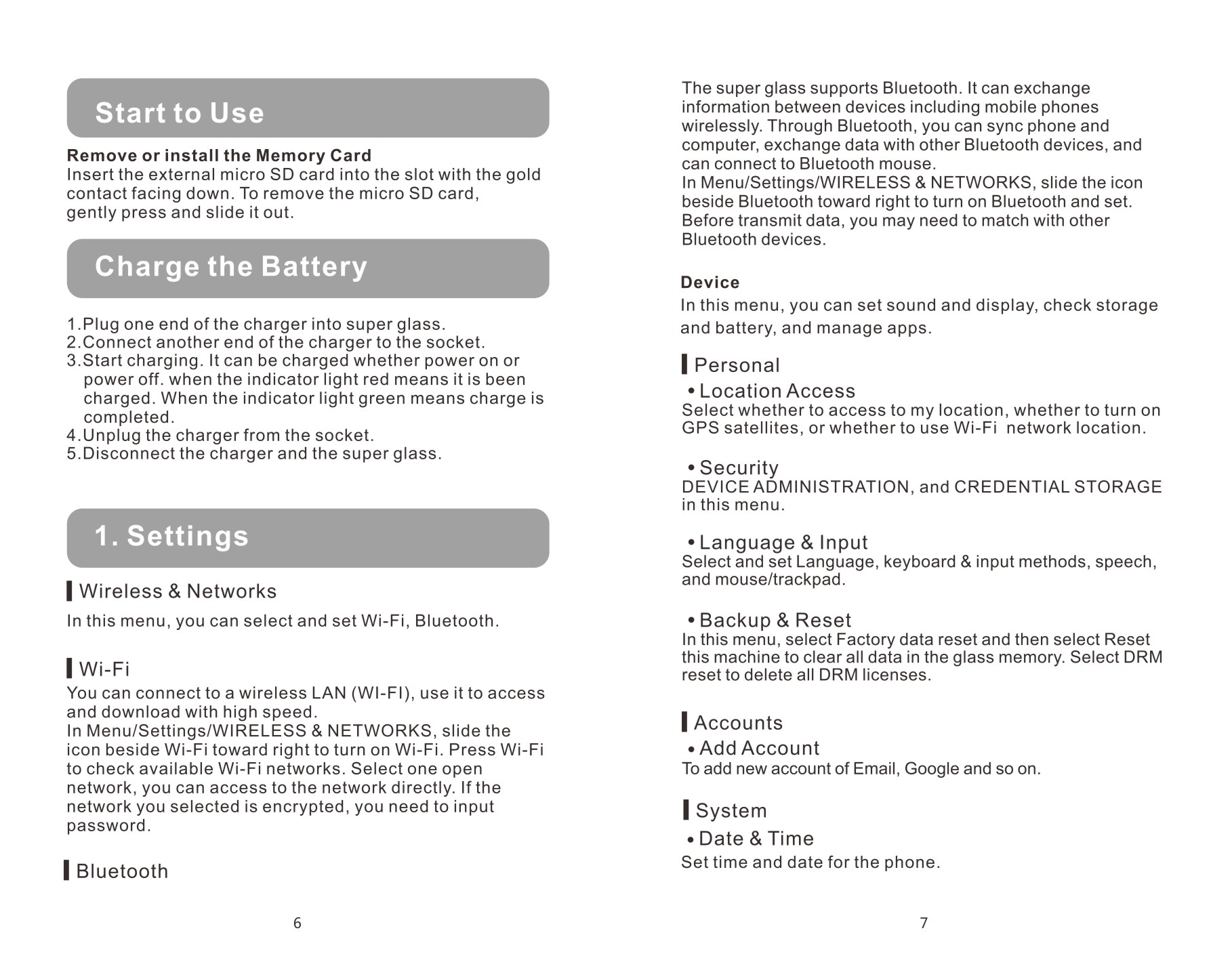 1 * умные очки Android (включая батарею)