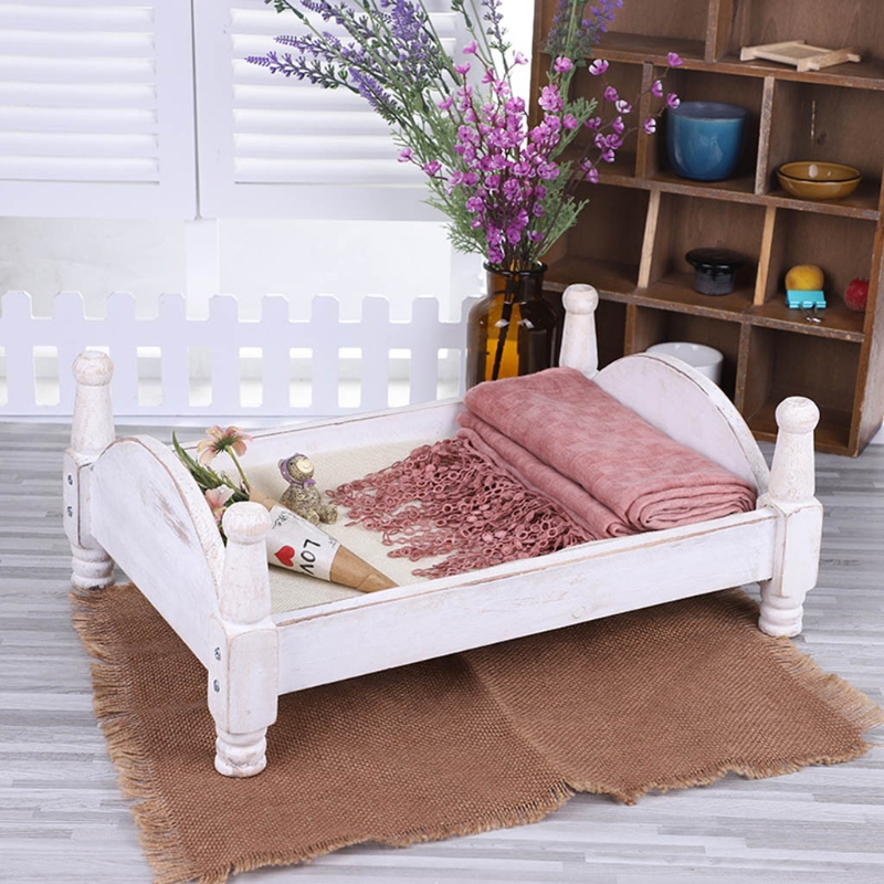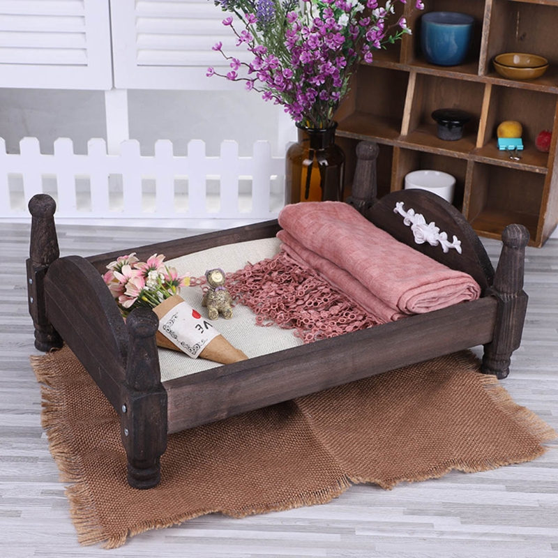 N80C Newborn Posing Detachable Mini Retro Bed Baby Photo Shooting Props Wooden Crib Infant Photograph Accessory
