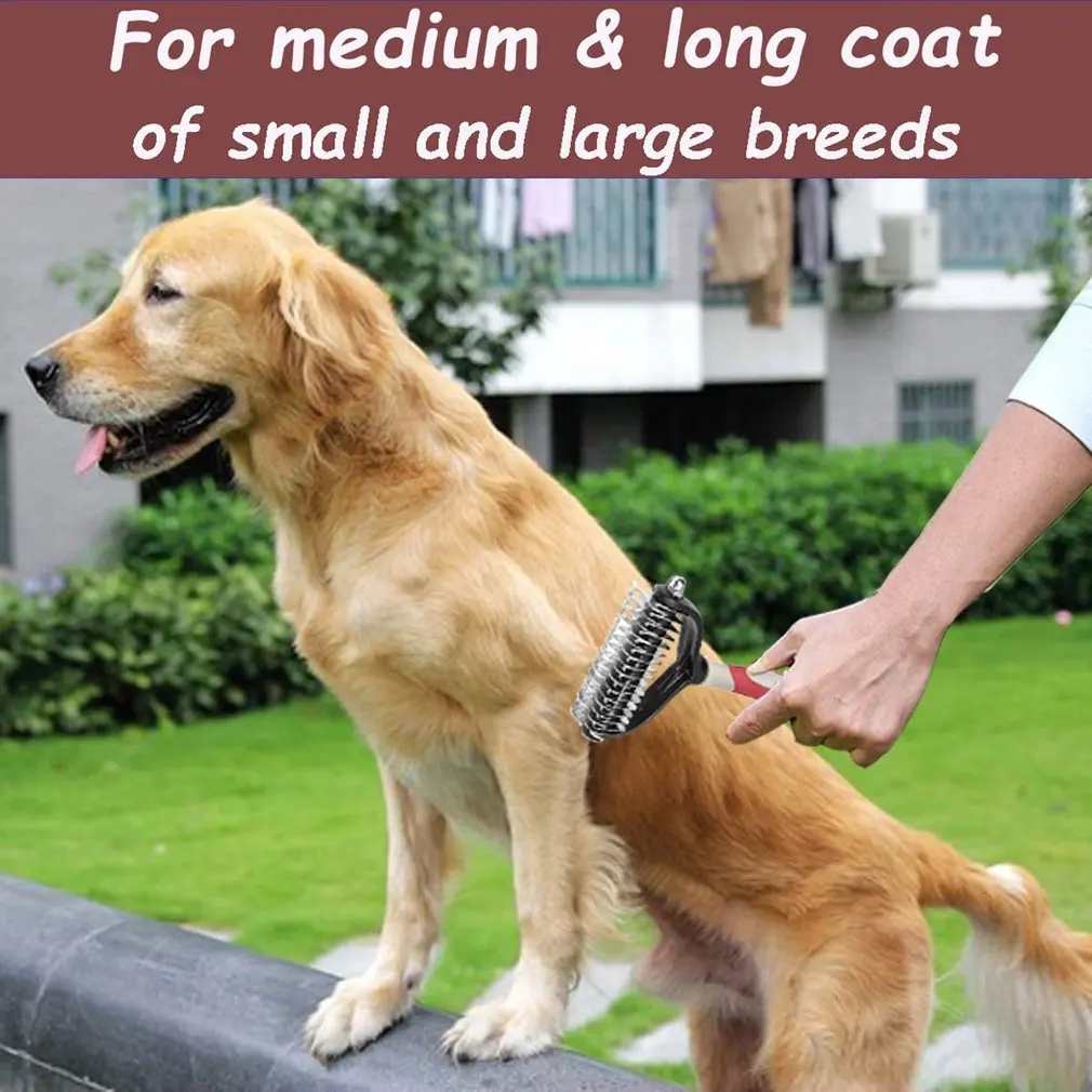 1. Дизайн с двумя головками: 2 стороны, 2 пальто, 1 инструмент! Применение 9-зубья сбоку этого собак и кошек щетка для гладкой dematting и 17-зубья сбоку для быстрого пальто истончение и deshedding.