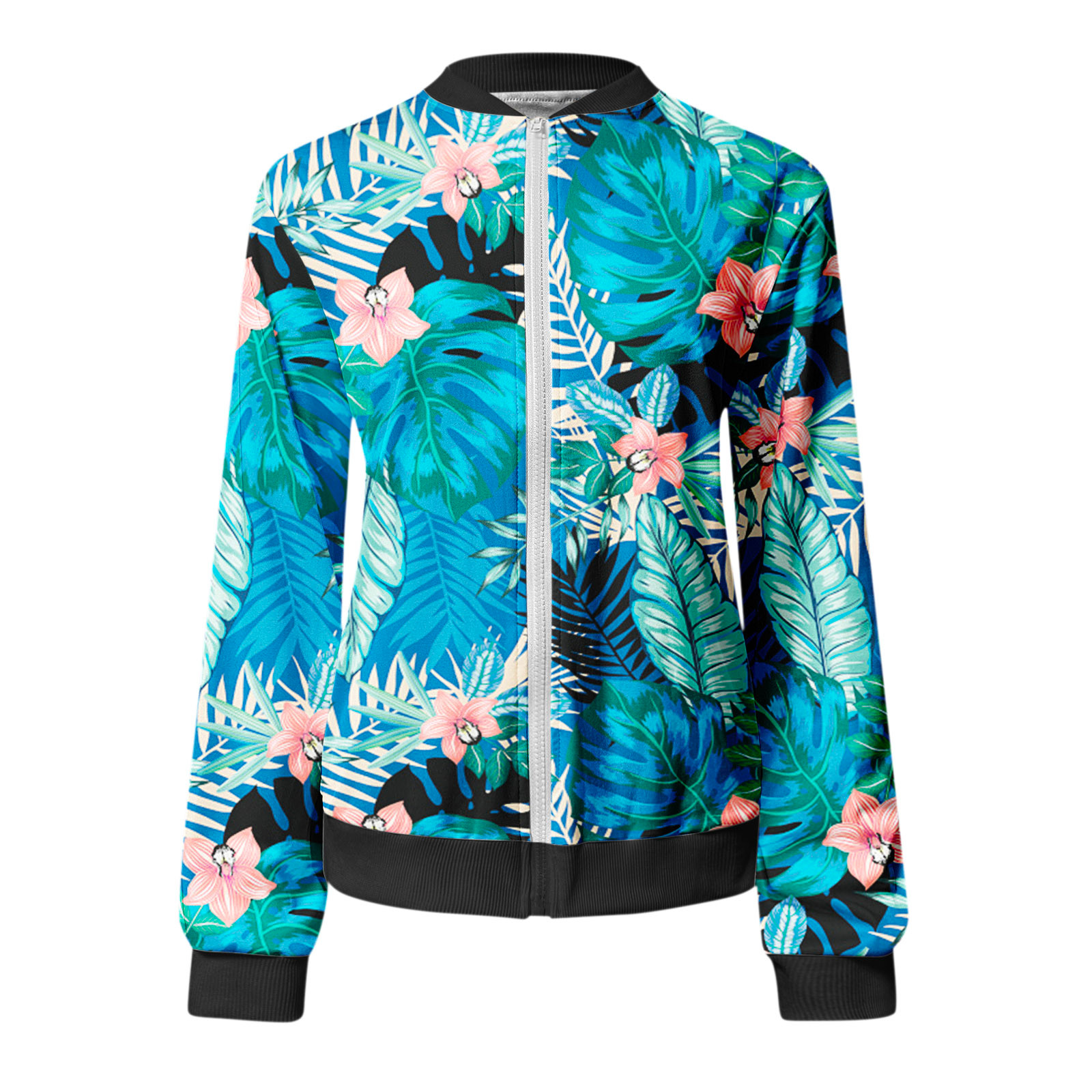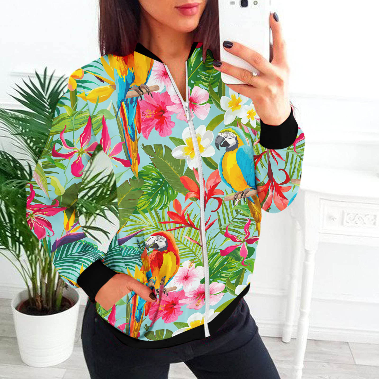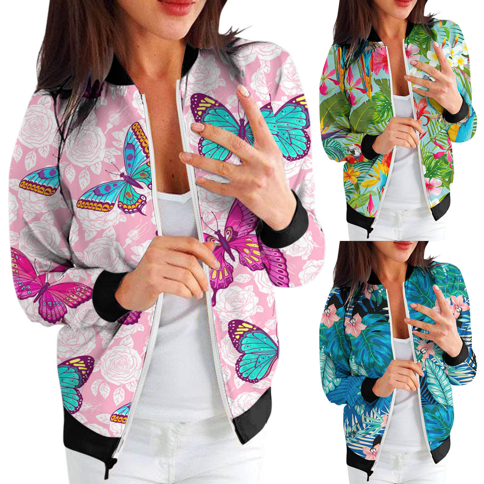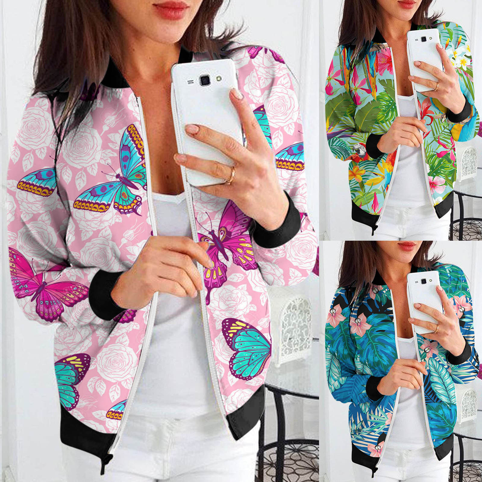 Womens Ladies Retro Floral Printing Zipper Up Jacket Casual Tops Coat Outwear