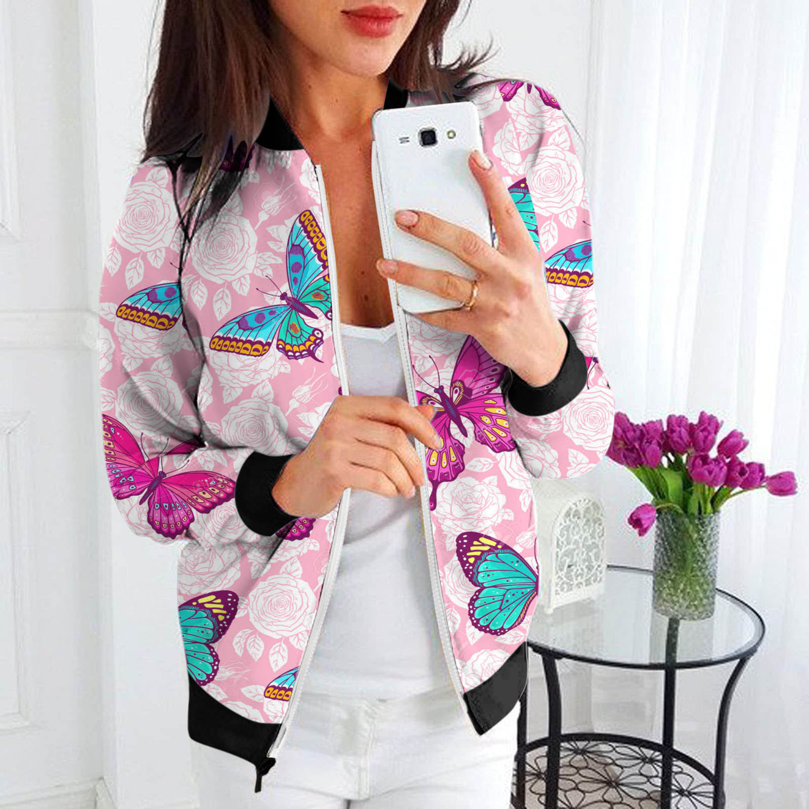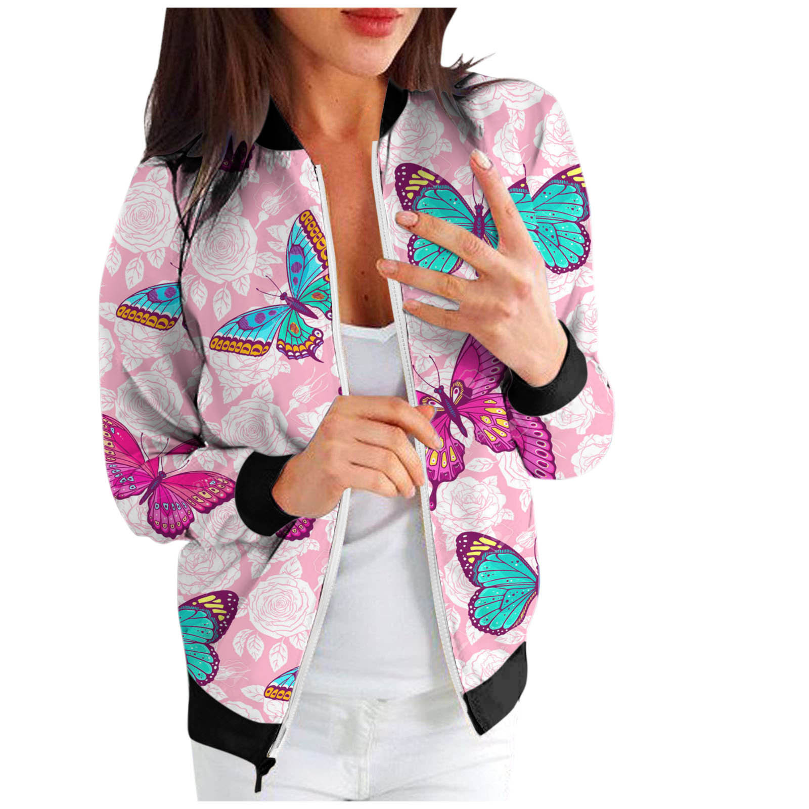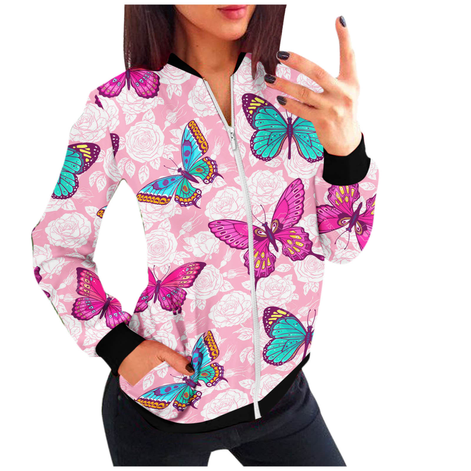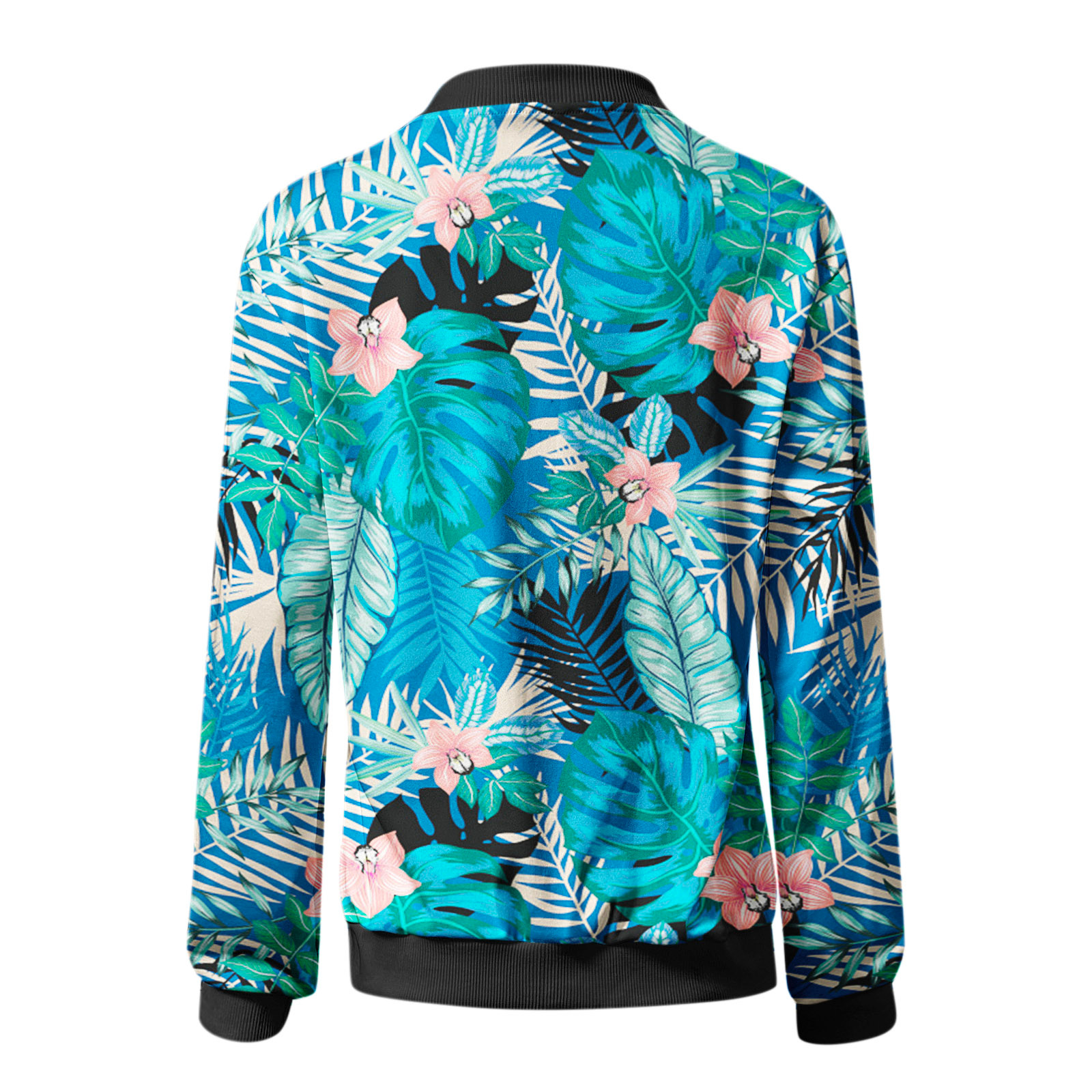 Womens Ladies Retro Floral Printing Zipper Up Jacket Casual Tops Coat Outwear