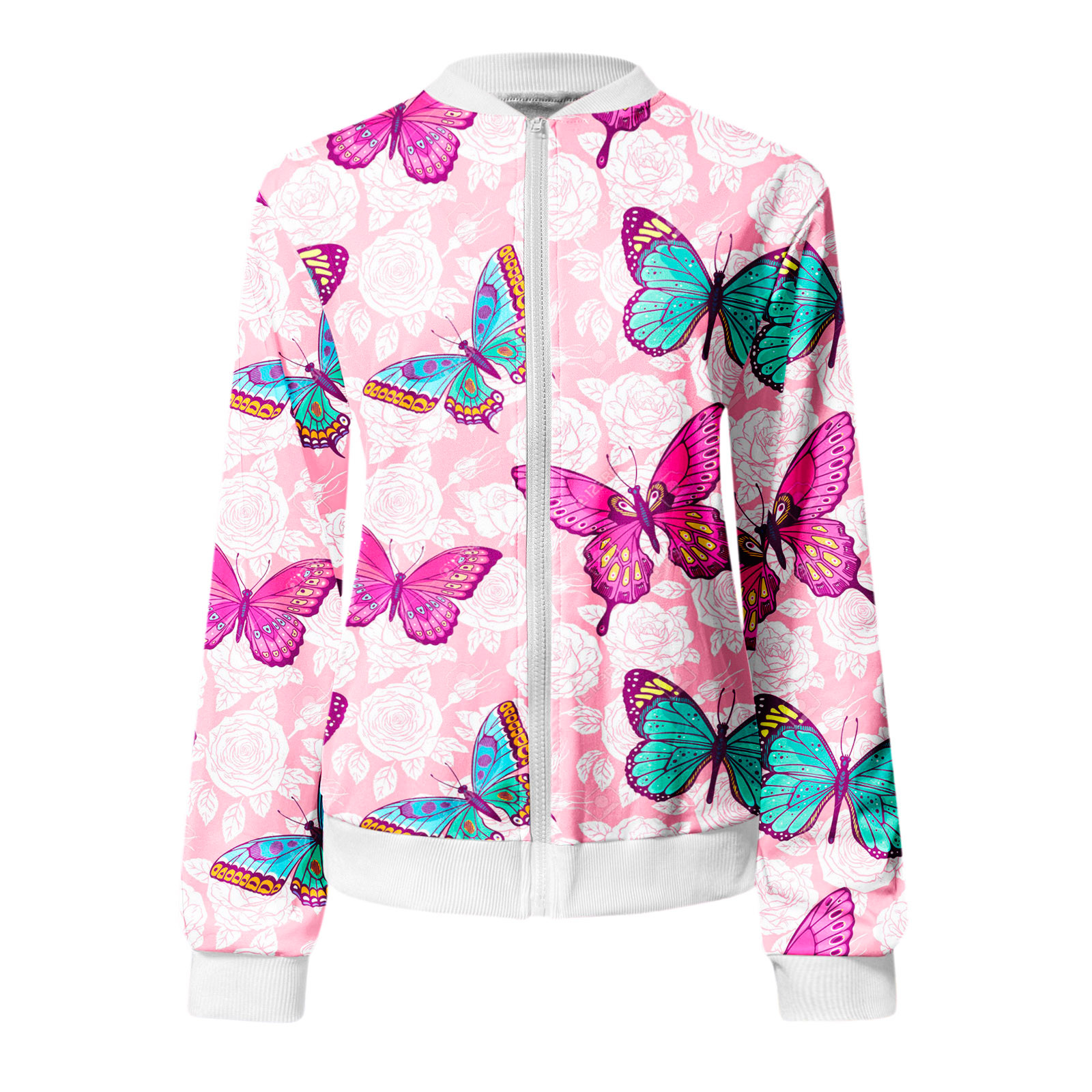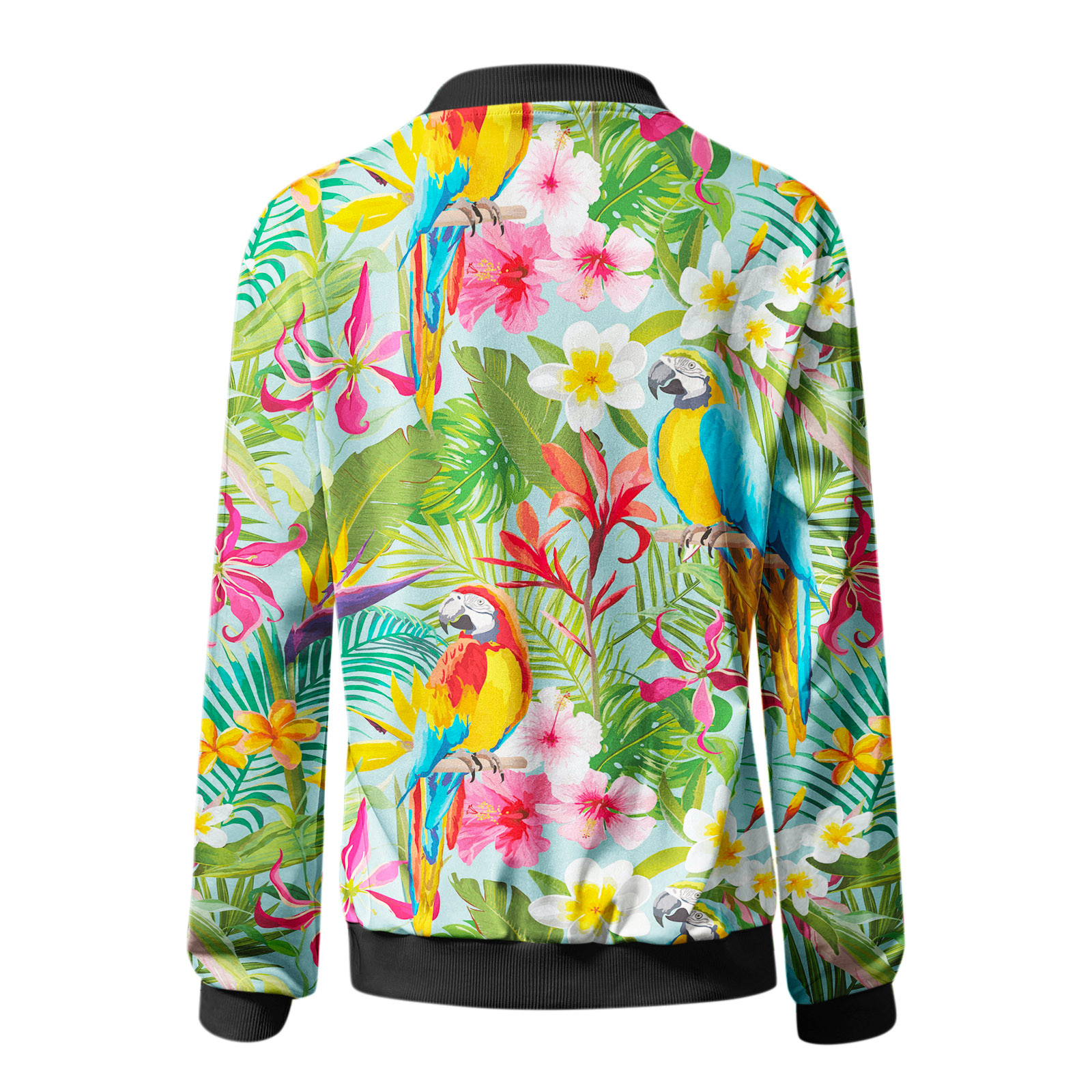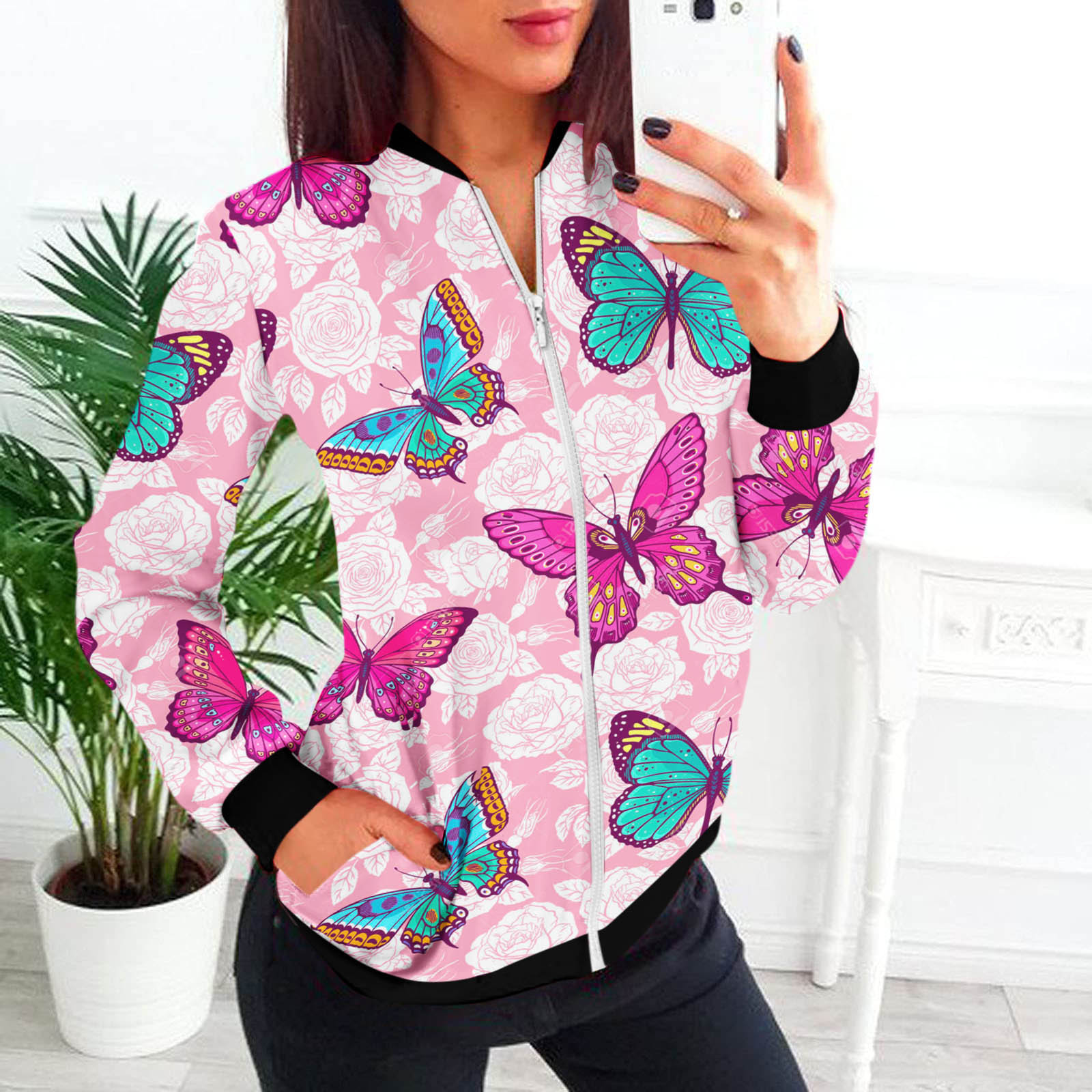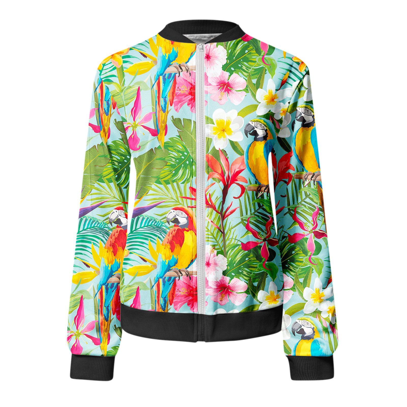 Womens Ladies Retro Floral Printing Zipper Up Jacket Casual Tops Coat Outwear