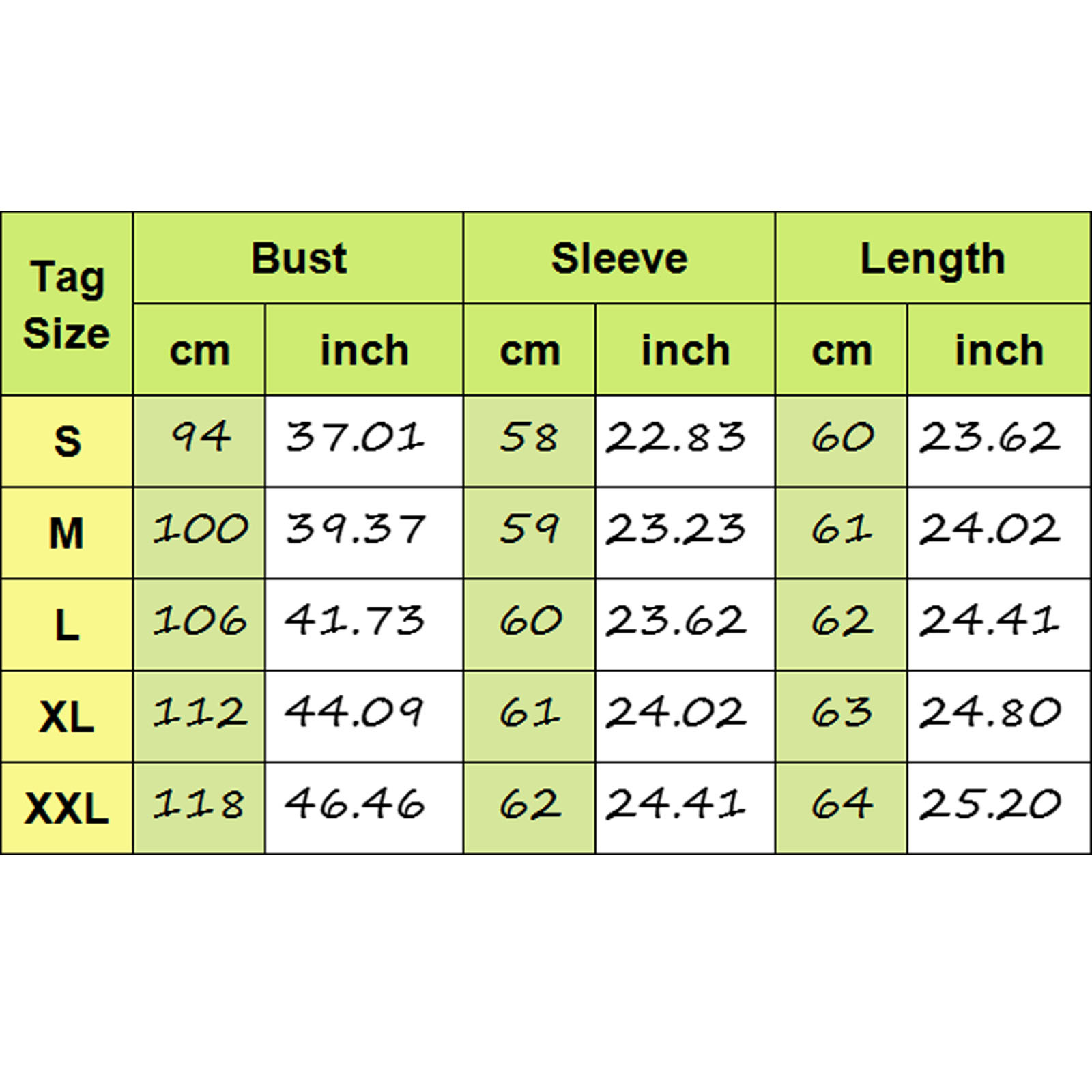 Size Bust Sleeve Length S 94cm/37.01'' 58cm/22.83'' 60cm/23.62'' M 100cm/39.37'' 59cm/23.23'' 61cm/24.02'' L 106cm/41.73'' 60cm/23.62'' 62cm/24.41'' XL 112cm/44.09'' 61cm/24.02'' 63cm/24.80'' XXL 118cm/46.46'' 62cm/24.41'' 64cm/25.20''Отличные брюки. Есть косяки но за такие деньги отличные. Вышли они мне за смешные деньги. Вес 94, талия чуть больше... Читать отзыв полностью...