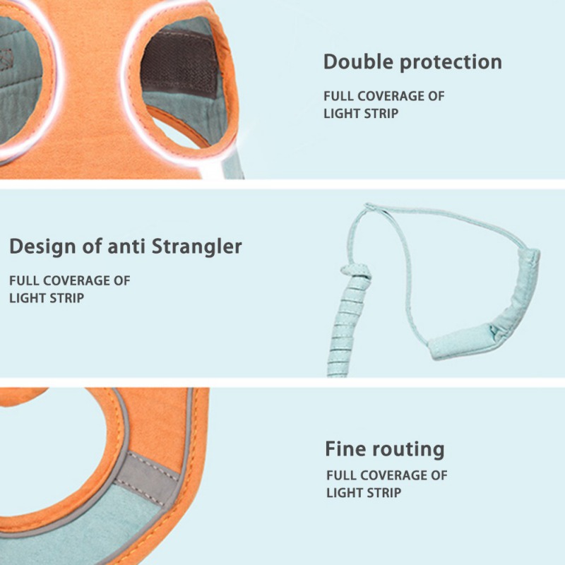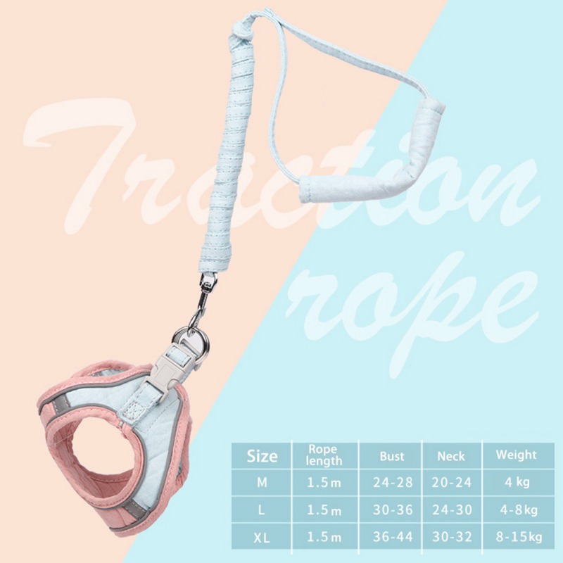 4. Нагрудный ремень продукта оснащен толстым тяговым канатом длиной 150 см, который удобно выходить и ходить по питомцу
