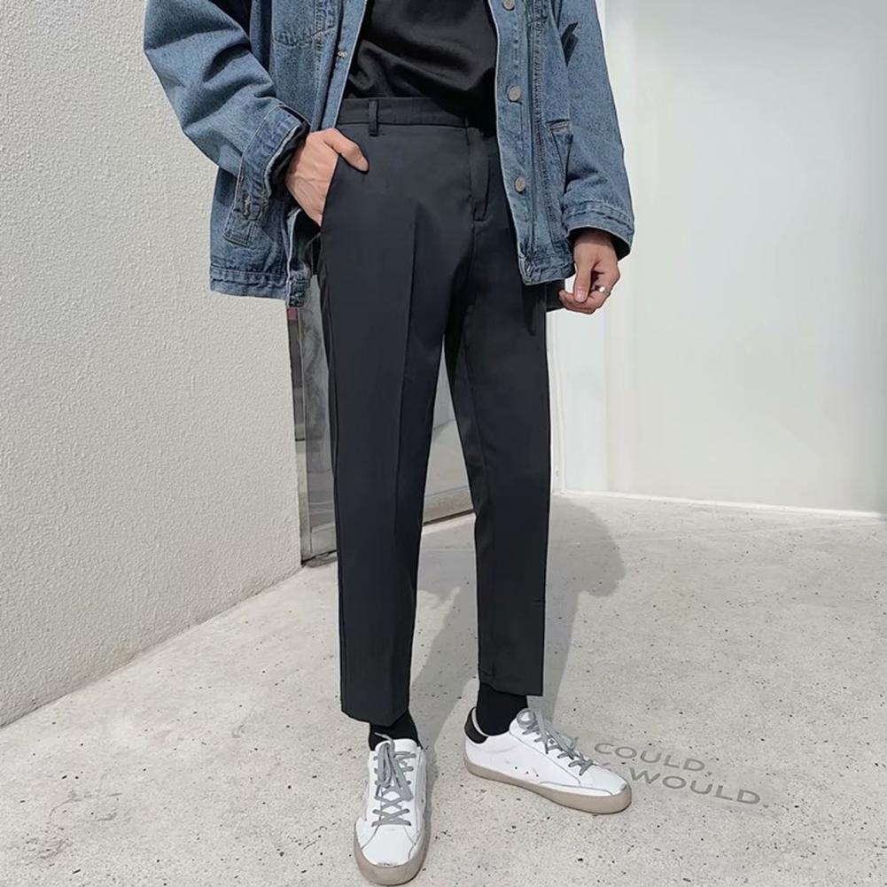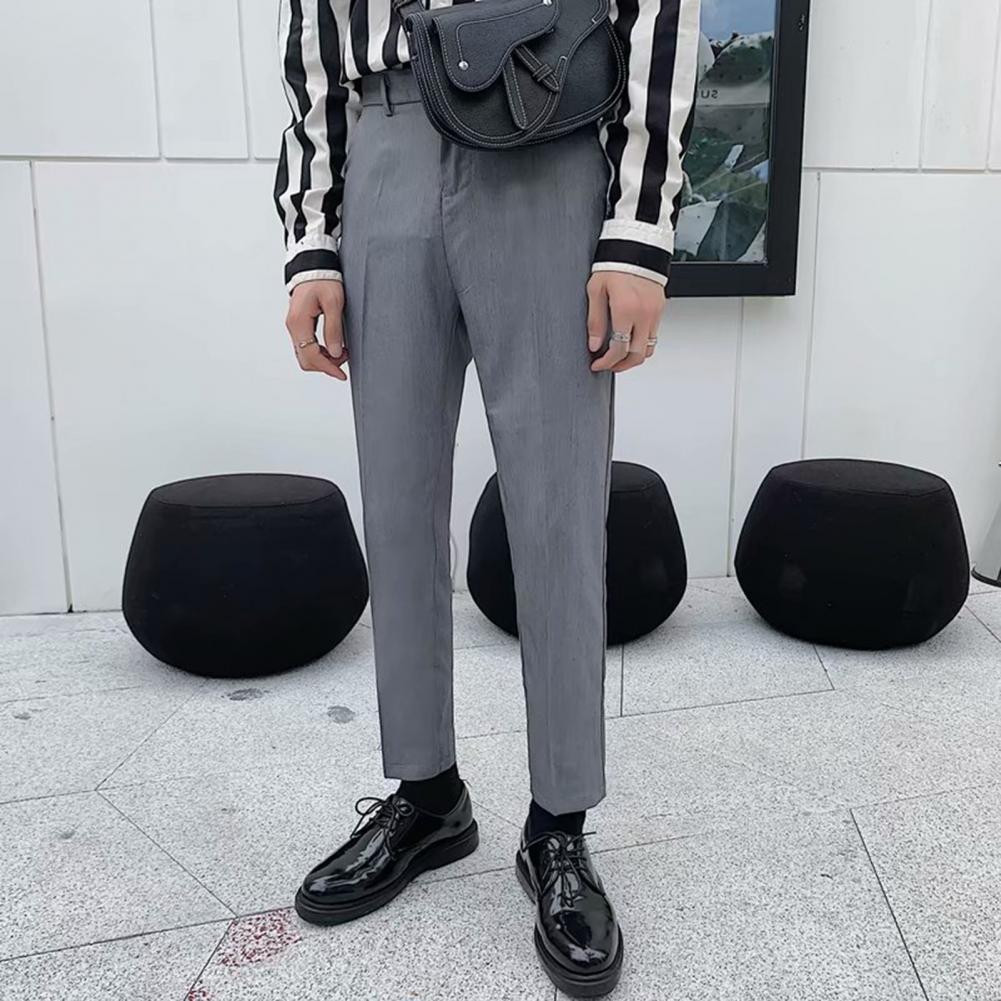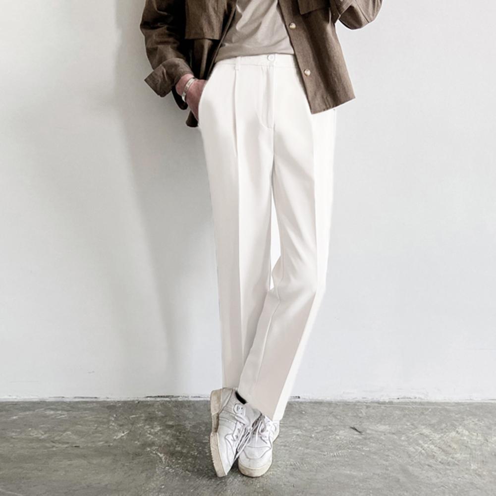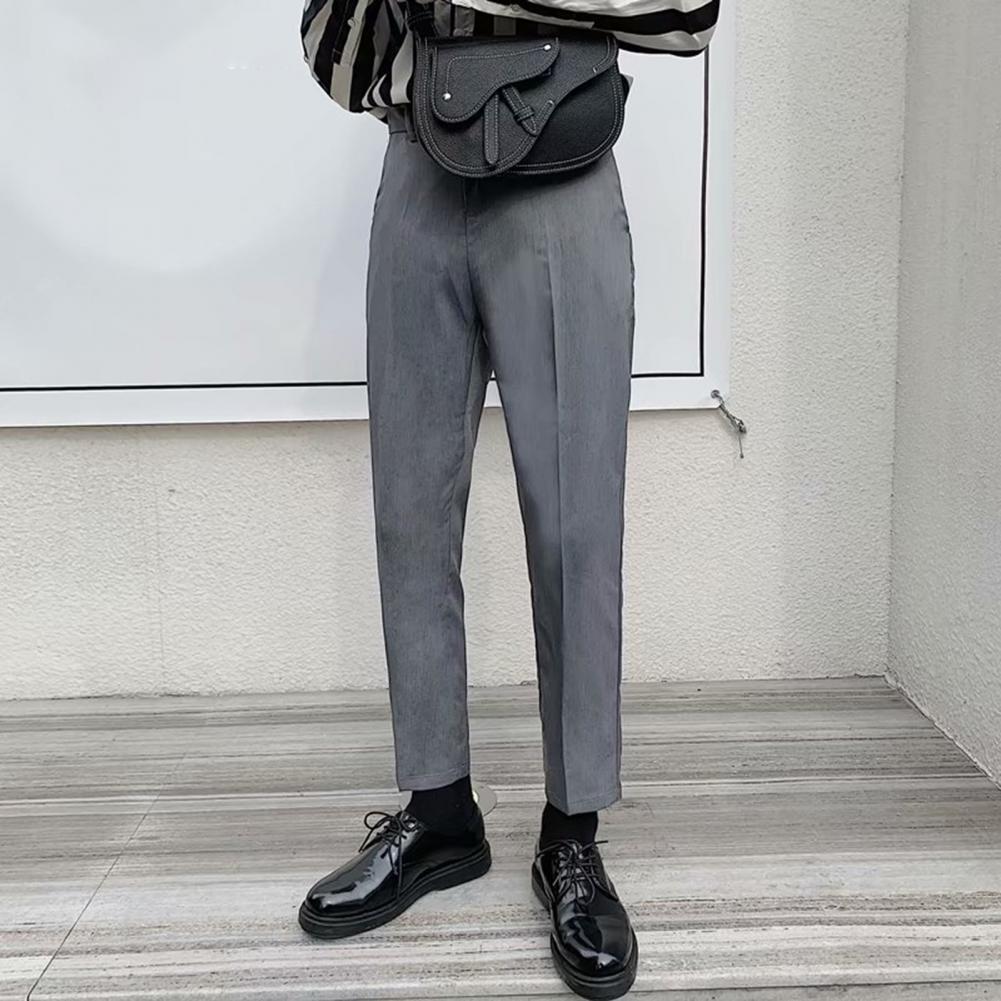 2021 новый модный мужской костюм брюки сплошной цвет средняя посадка карманы повседневное прямое платье Брюки Слаксы для работы