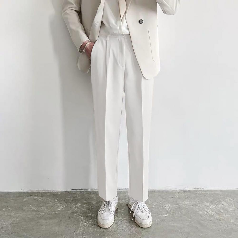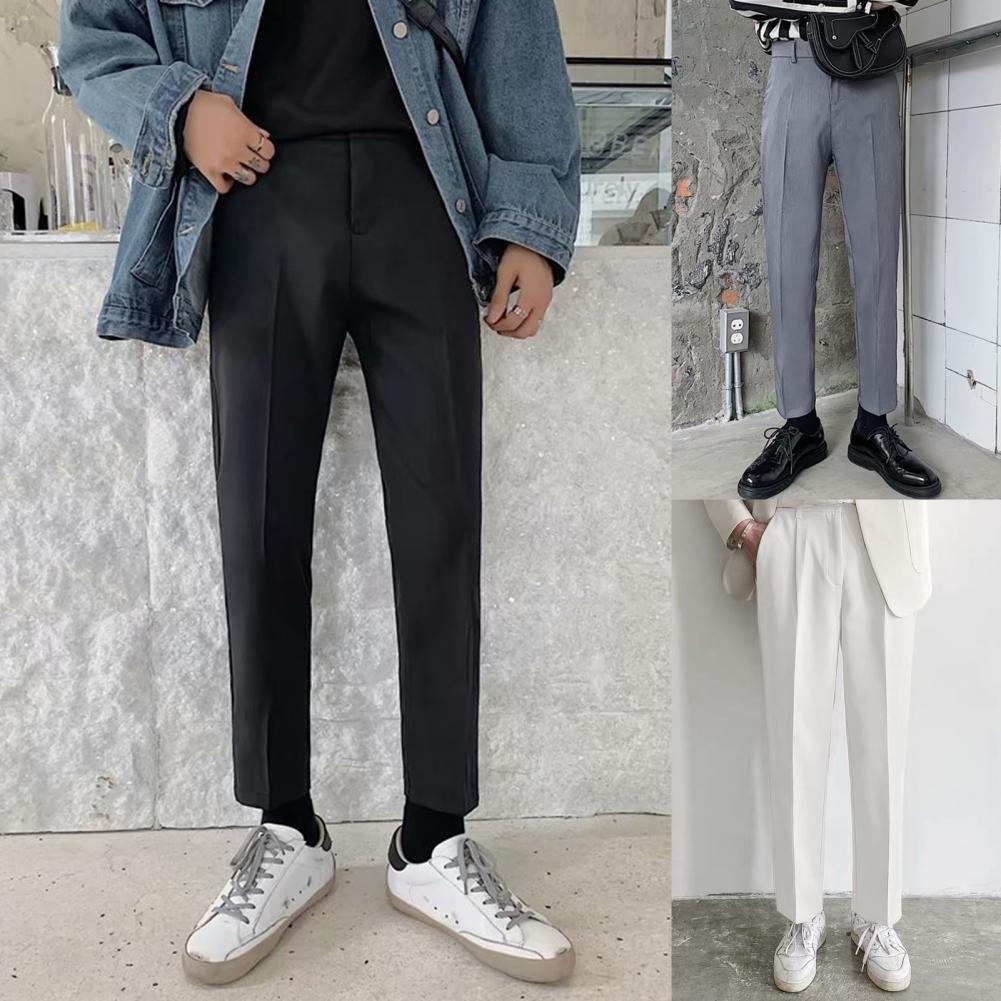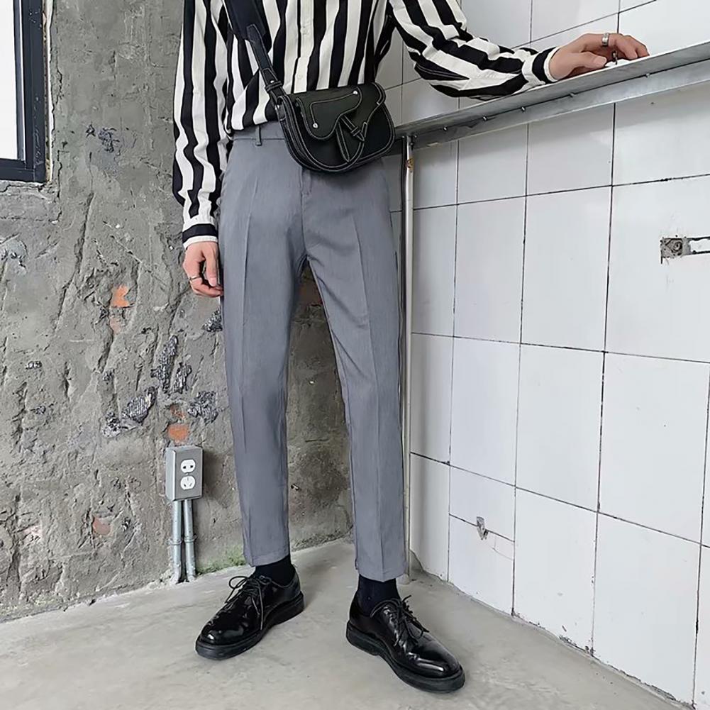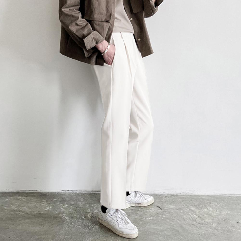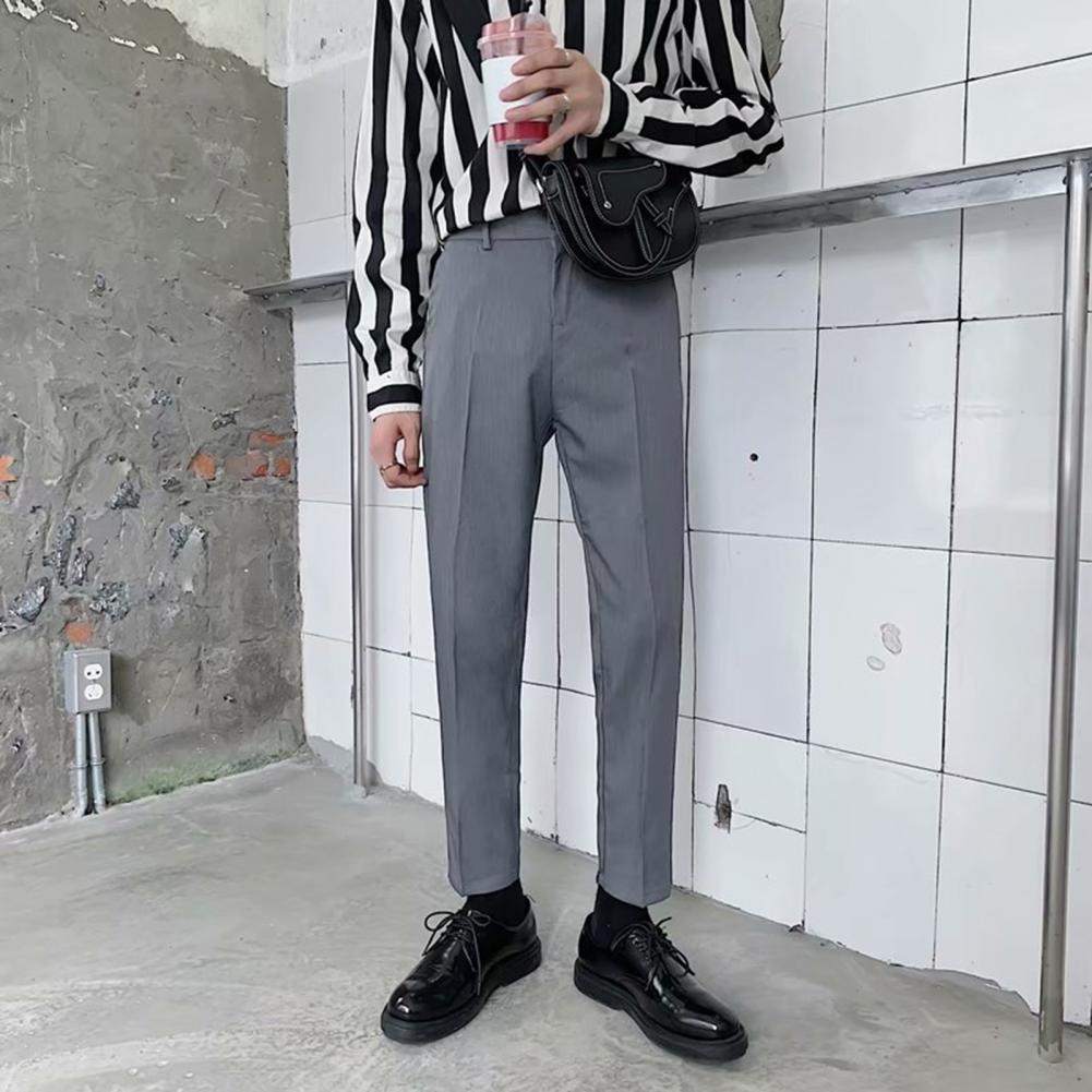 2021 новый модный мужской костюм брюки сплошной цвет средняя посадка карманы повседневное прямое платье Брюки Слаксы для работы